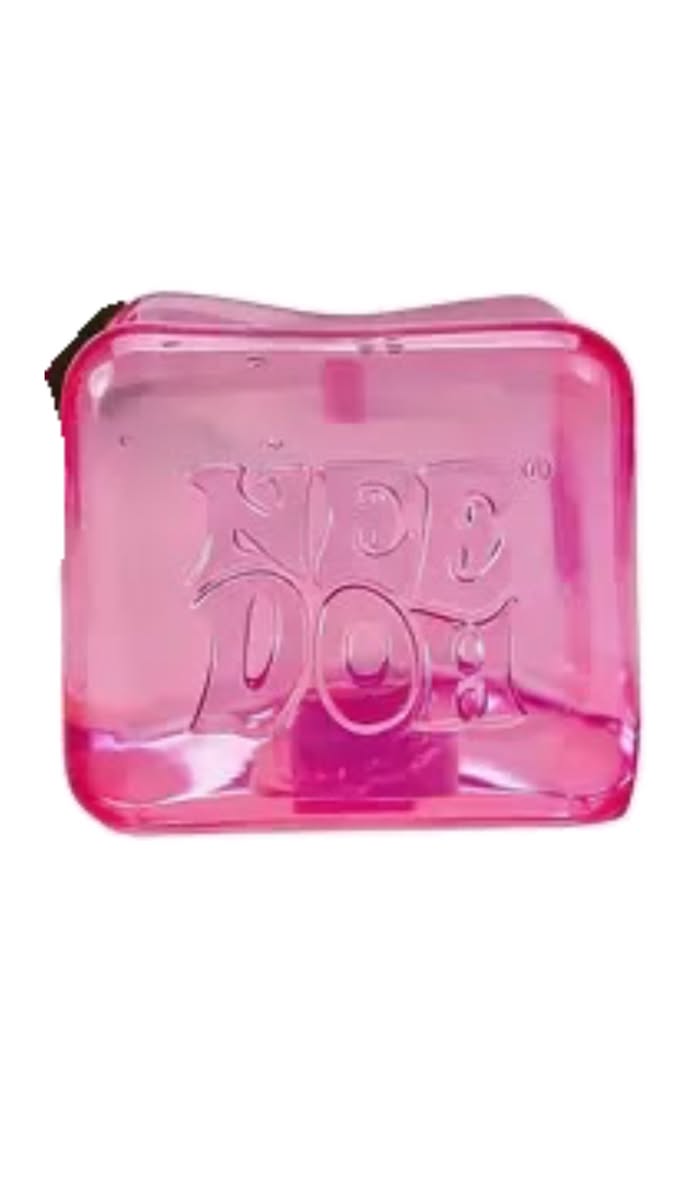 This image features a soft, translucent pink plastic object with molded text, giving it a playful and tactile quality. The design relies on simple geometric form and vibrant color to create a nostalgic and inviting aesthetic.