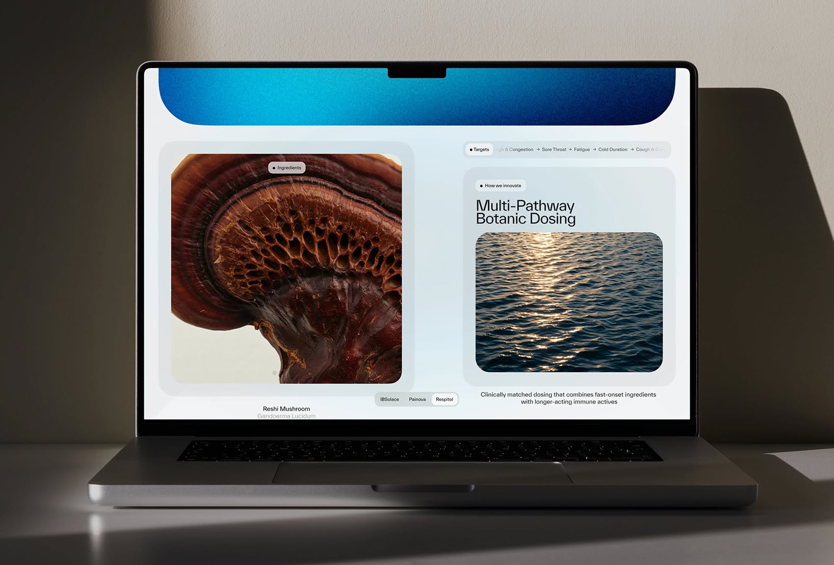 The design features a clean, modern interface that effectively combines detailed photographic elements with organized data presentation. The visual language is professional and trustworthy, using muted natural tones alongside cool blues to create a serene yet clinical feel.