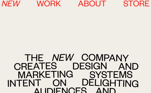 The image presents a stark, minimalist navigation bar followed by centered, all-caps body text against a light background. The design relies on high contrast and simple typography to convey a professional, direct message.