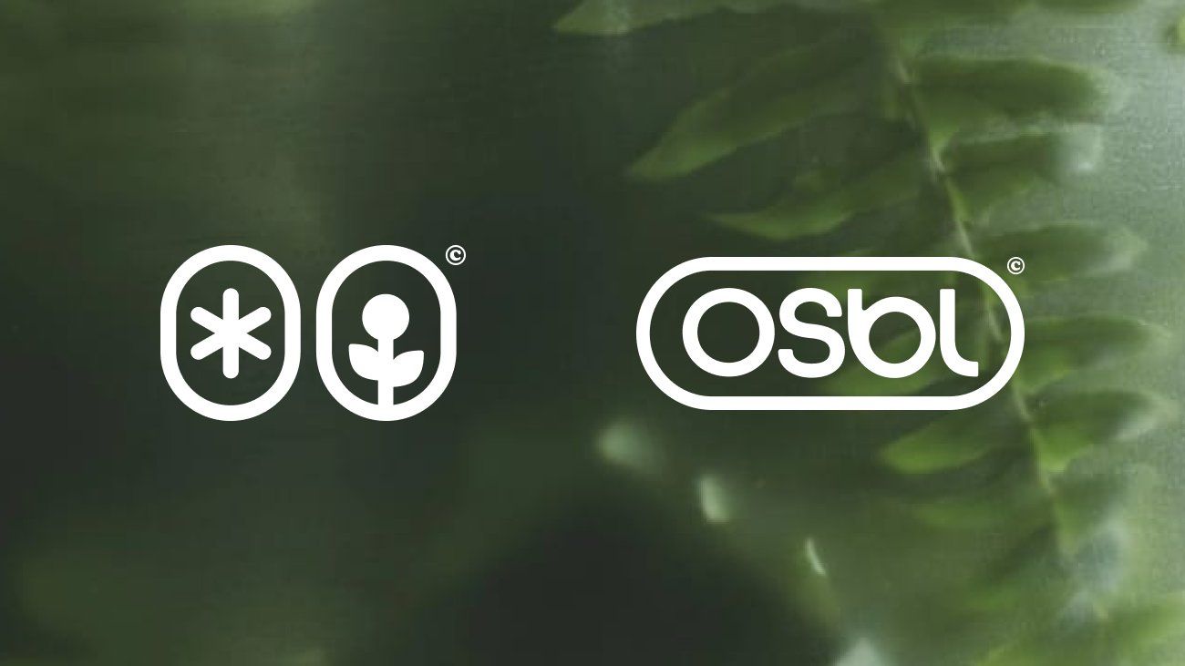 The image features a minimalist, high-contrast graphic design composed of clean white icons against a dark, muted green background. The visual language is modern and technical, relying on simple geometric shapes to convey branding or certification.