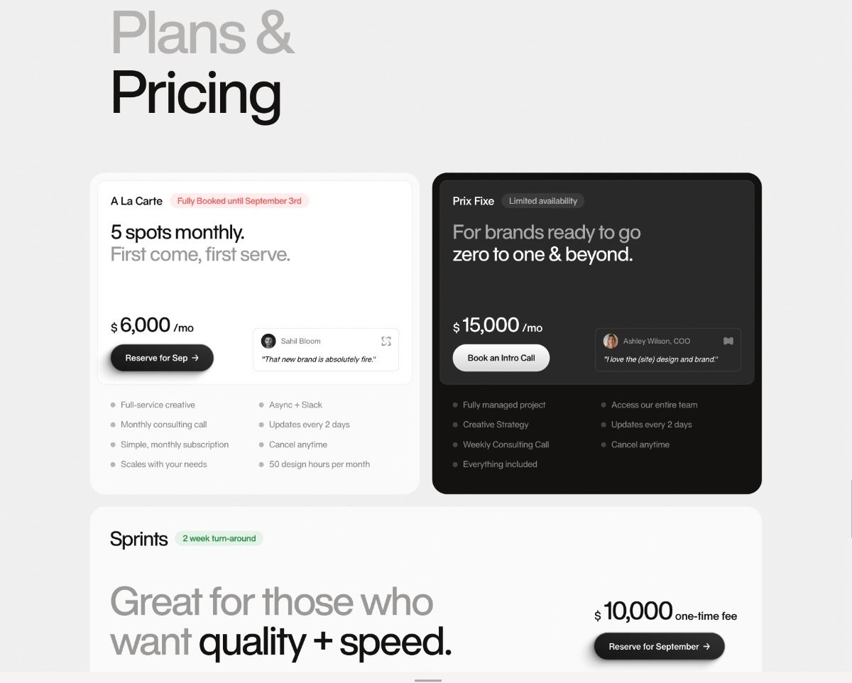 The design employs a clean, minimalist aesthetic characterized by ample white space and clear typographic hierarchy to present complex pricing information. The visual language is professional and straightforward, prioritizing readability and structure over elaborate decoration.