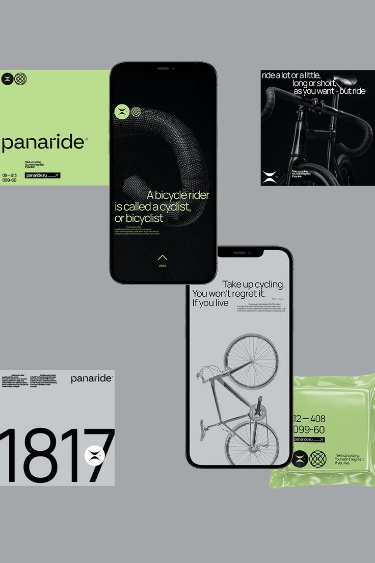 The image presents a clean, minimalist interface design, likely for a mobile application or service related to cycling. It uses high contrast between black and white elements against a muted, light gray background, conveying a modern and professional aesthetic.