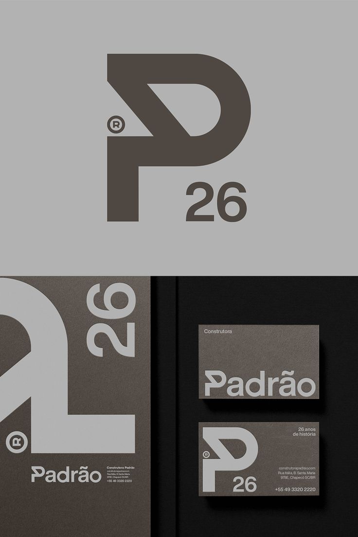 This design utilizes a sophisticated, minimalist approach characterized by strong geometric forms and ample negative space. The visual language is clean and structured, relying on precise typography and a muted grayscale palette to convey professionalism and established heritage.