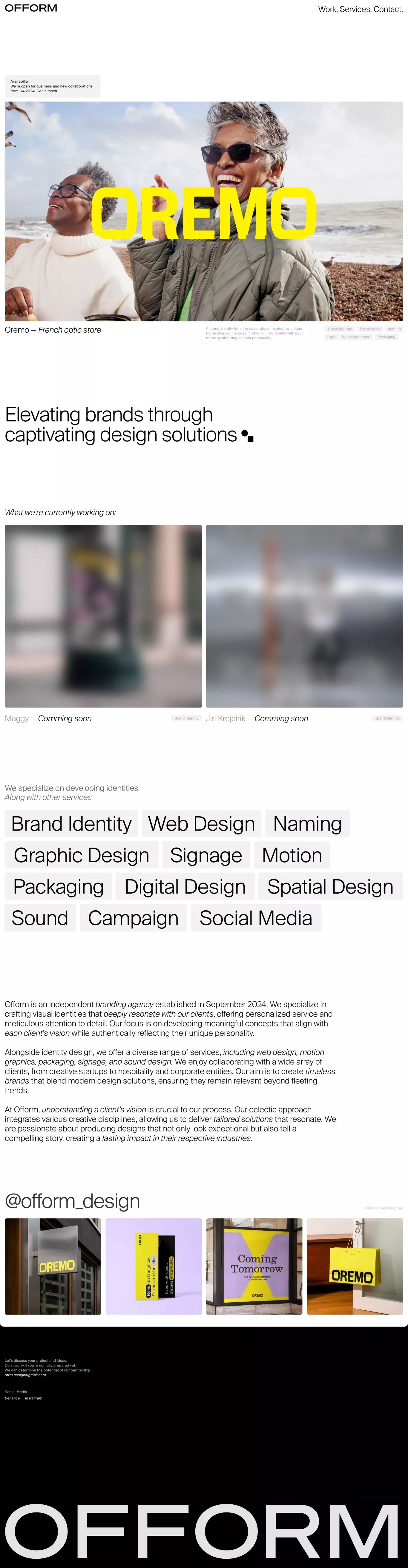The design exhibits a clean, professional aesthetic characterized by ample white space and clear hierarchy. The visual language is modern and direct, effectively positioning the agency as a sophisticated provider of design solutions. The overall feel is trustworthy, competent, and creatively focused.