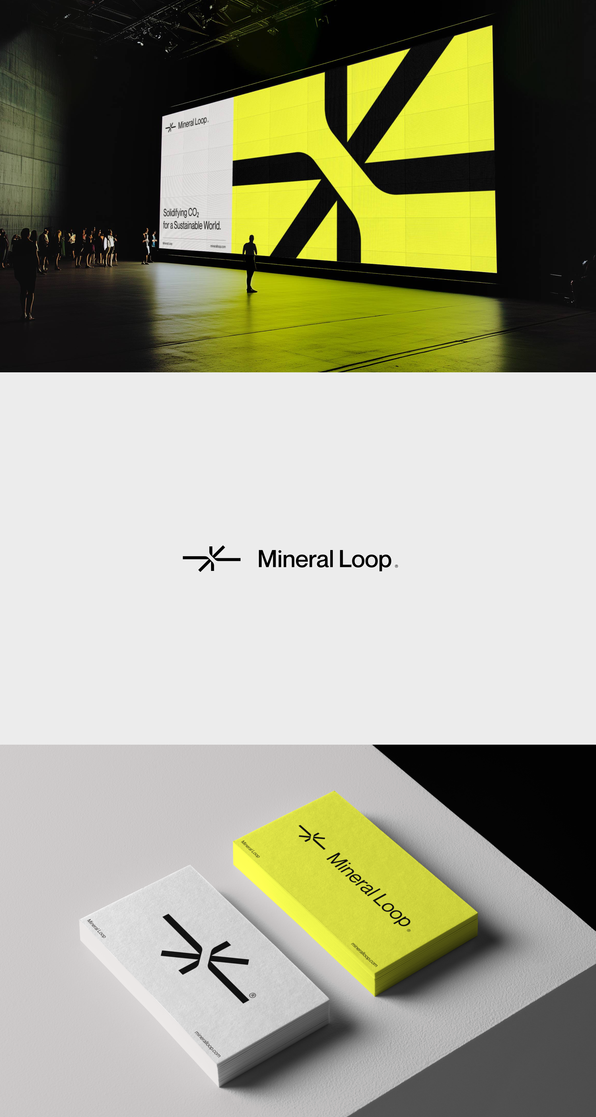 This visual presents a clean, high-contrast study in modern minimalism, juxtaposing large digital display with tangible product mockups. The design emphasizes geometric precision and a bold use of color to create a sophisticated, tech-forward brand identity.