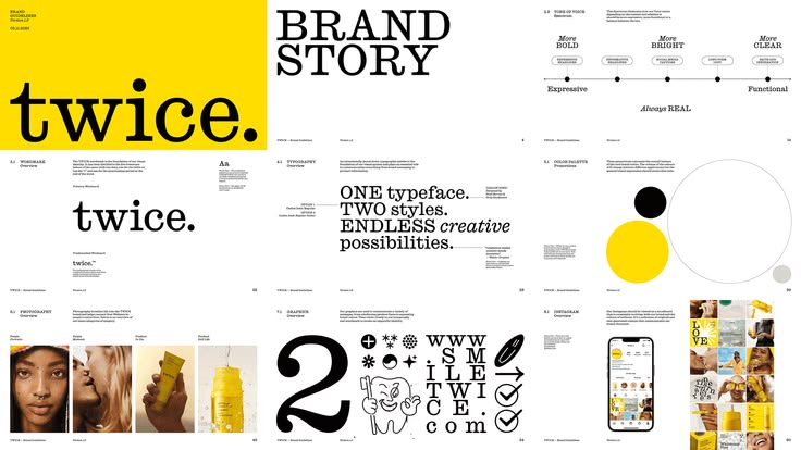 This design showcases a highly minimalist and sophisticated brand story layout, relying heavily on strong typographic hierarchy and ample negative space. The visual language is clean, modern, and editorial, effectively guiding the viewer through structured information.