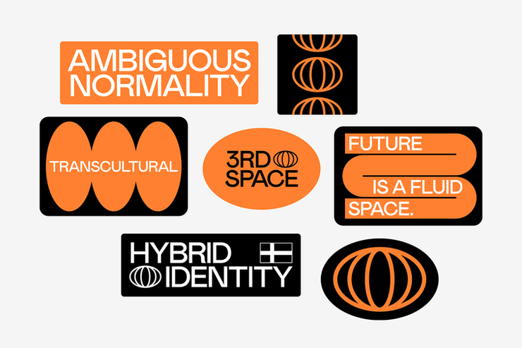 This design utilizes a clean, modern flat graphic style characterized by high contrast between black and vibrant orange. The visual language relies on abstract geometric symbols to represent complex conceptual ideas, resulting in a sophisticated and structured aesthetic.