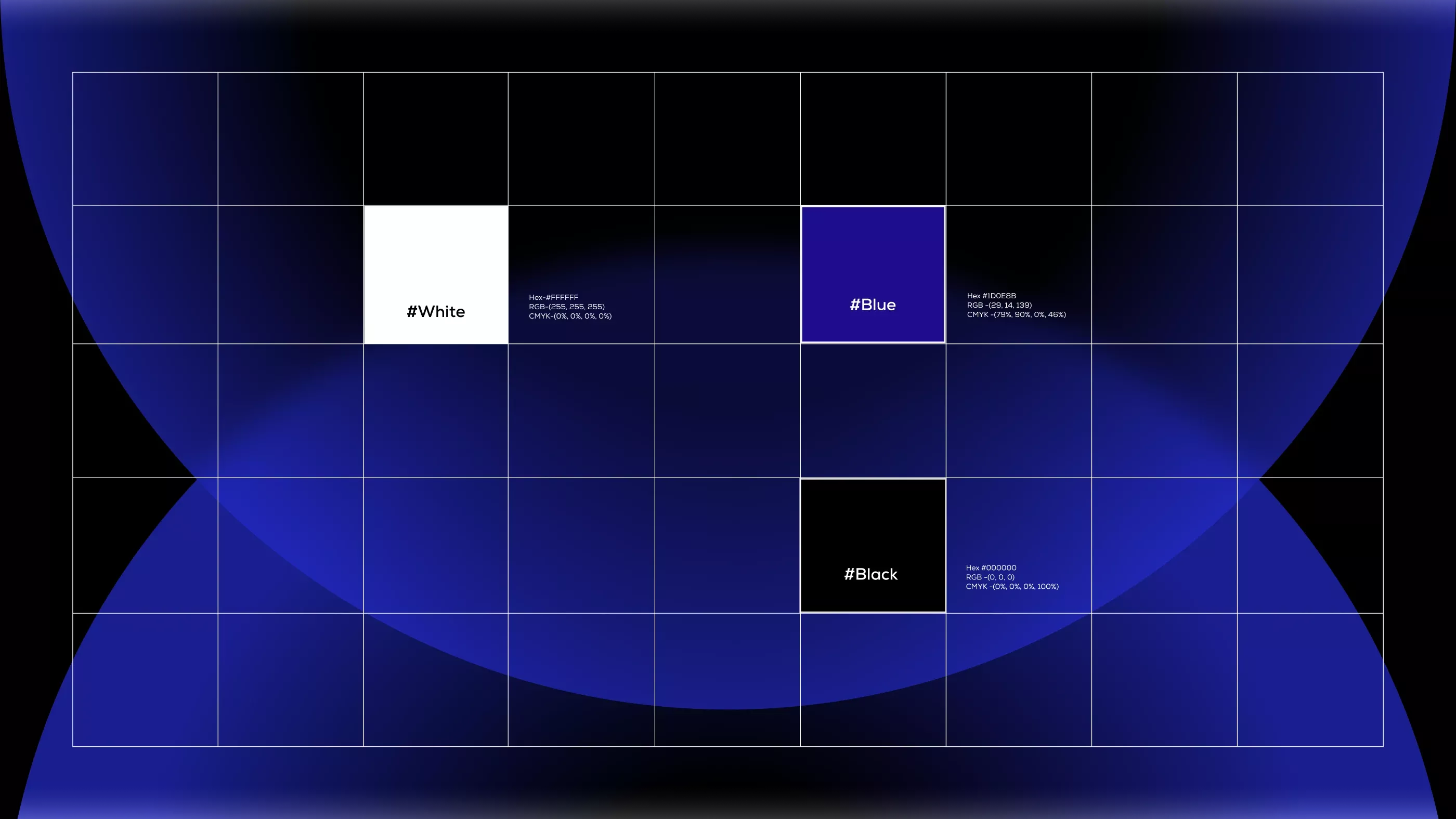 This image presents a clean, geometric grid structure used to showcase distinct color blocks against a deep indigo background. The design utilizes strong contrast and precise alignment, creating a modern and organized visual hierarchy. It functions effectively as a palette reference or theme selector.