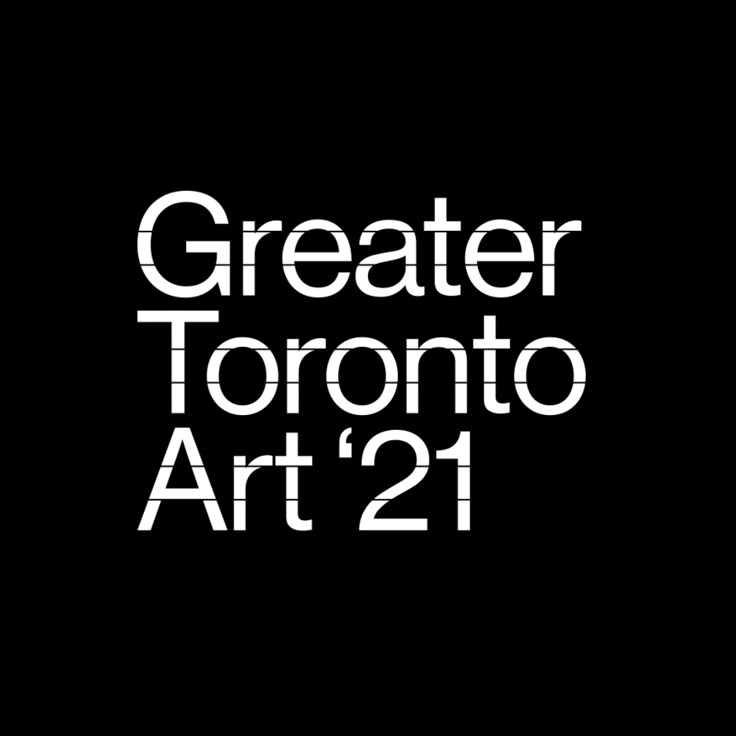 This is a stark, minimalist typographic design featuring the text 'Greater Toronto Art '21' rendered in a bold, sans-serif typeface. The design relies heavily on negative space and high contrast to convey a modern, clean, and authoritative aesthetic suitable for an official event or exhibition.