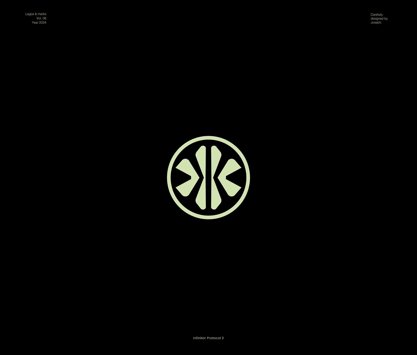 This design features a stark, abstract black symbol set against a neutral light gray background. The visual language relies on clean lines and negative space to create a balanced, modern, and highly symbolic mark. It conveys a sense of refined simplicity and intentional minimalism.