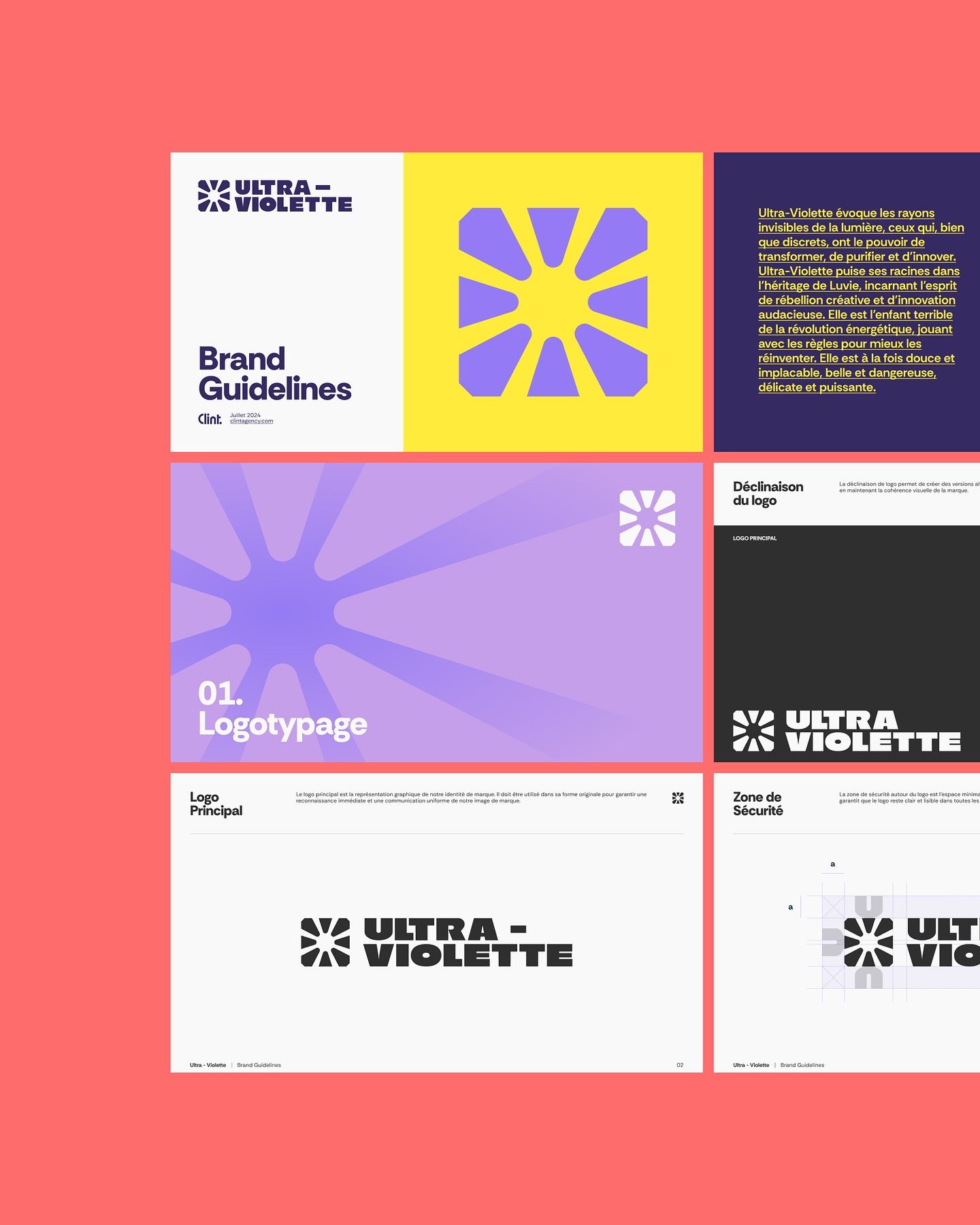 This visual presents a set of professional brand guidelines using a vibrant and modern aesthetic. The design relies heavily on geometric shapes, clean lines, and a bold color contrast to establish a clear visual identity. The overall feel is structured yet energetic, suitable for corporate or creative branding documentation.