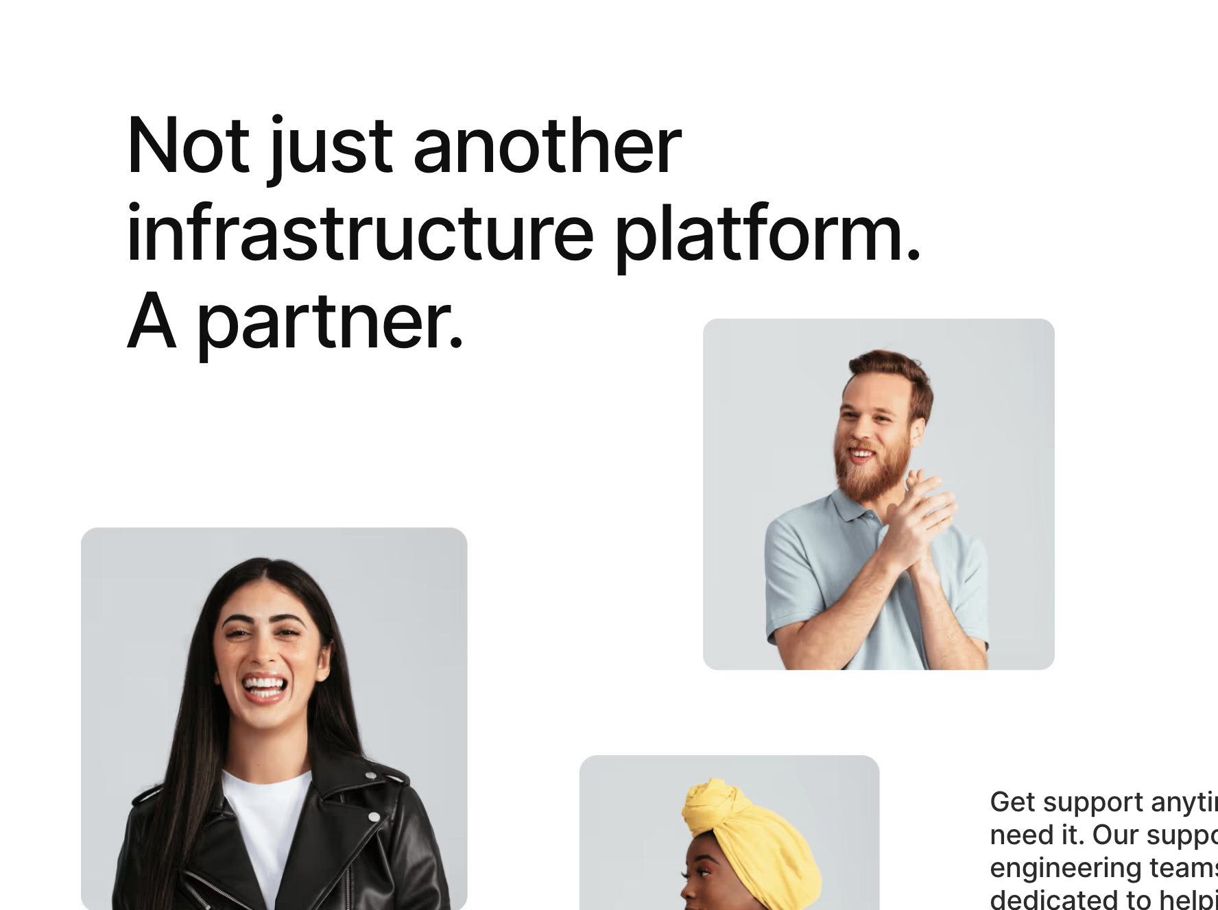 The image features clean, professional branding text juxtaposed with photographic elements of diverse individuals, suggesting a focus on partnership and human connection within an infrastructure or service industry. The design is modern, minimalist, and relies on clear typography to convey a message of reliability.