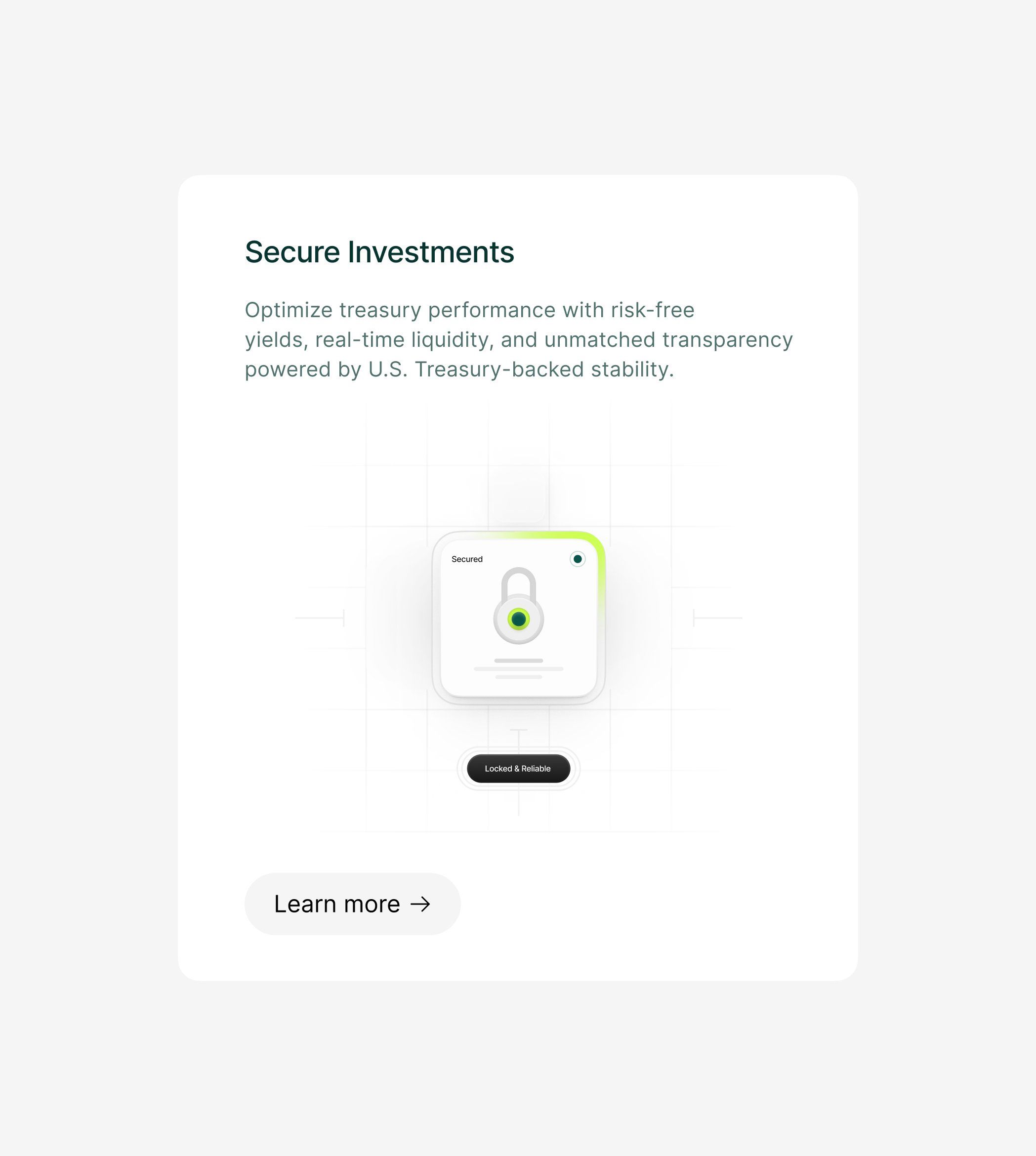 The design is clean, minimalist, and professional, utilizing ample white space to focus attention on the core message. The visual language is modern and trustworthy, employing simple iconography and clear typography to convey security and financial stability.