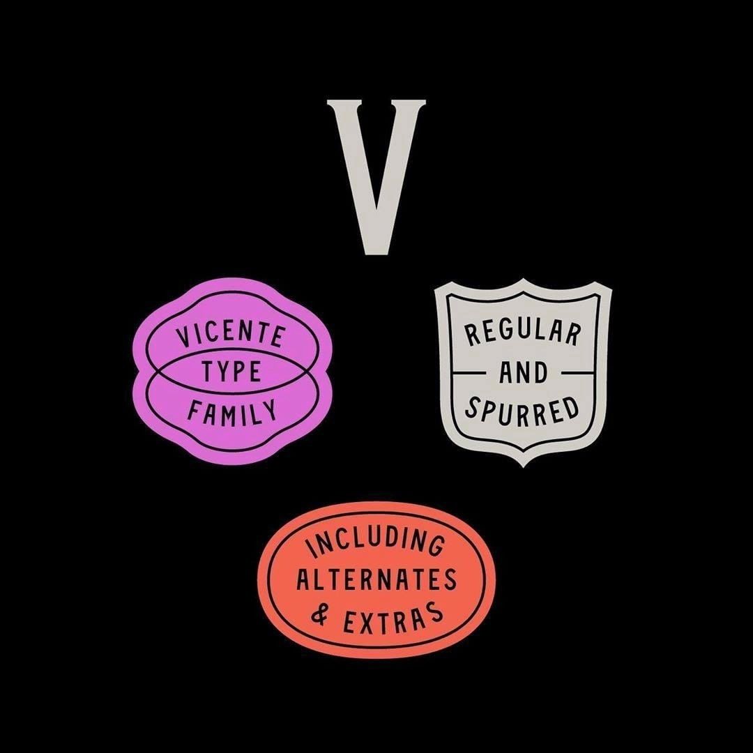 This is a minimalist, monochrome design featuring a large letter 'V' at the top, followed by three distinct, rounded badges or labels. The design uses simple shapes and negative space to convey a sense of structured categorization or branding.