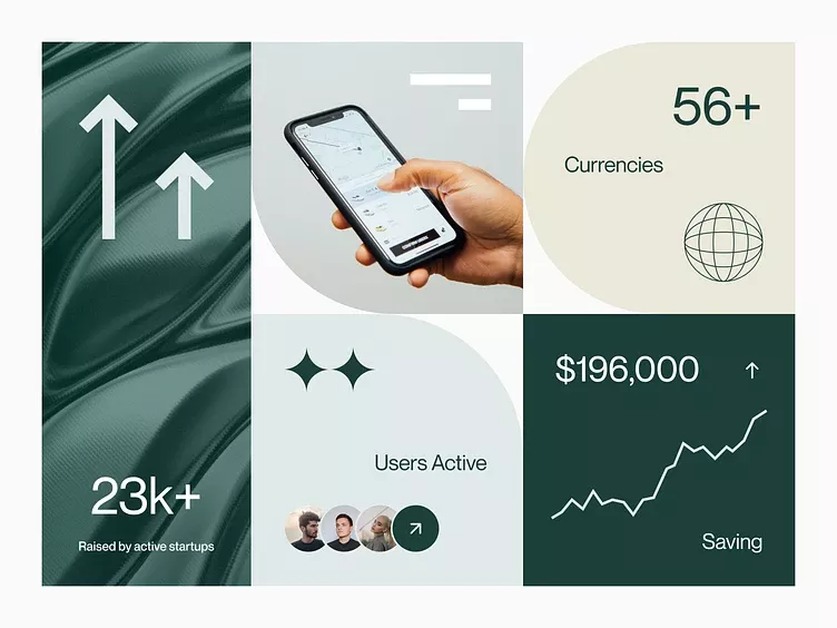 This design features a clean, modern infographic style using a restricted color palette to present key metrics. The visual language is highly structured and minimalist, utilizing geometric shapes and clear typography to emphasize growth and achievement.