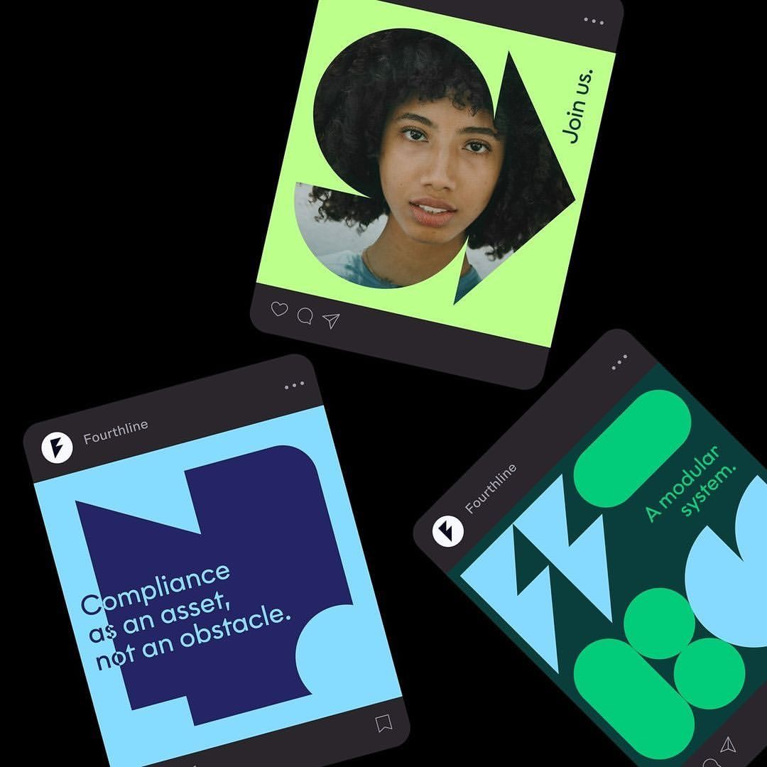 This visual collage showcases a modern, clean interface design blending branded elements, product mockups, and data visualization. The design utilizes a modular grid structure to present diverse information clearly, emphasizing functionality and trust.