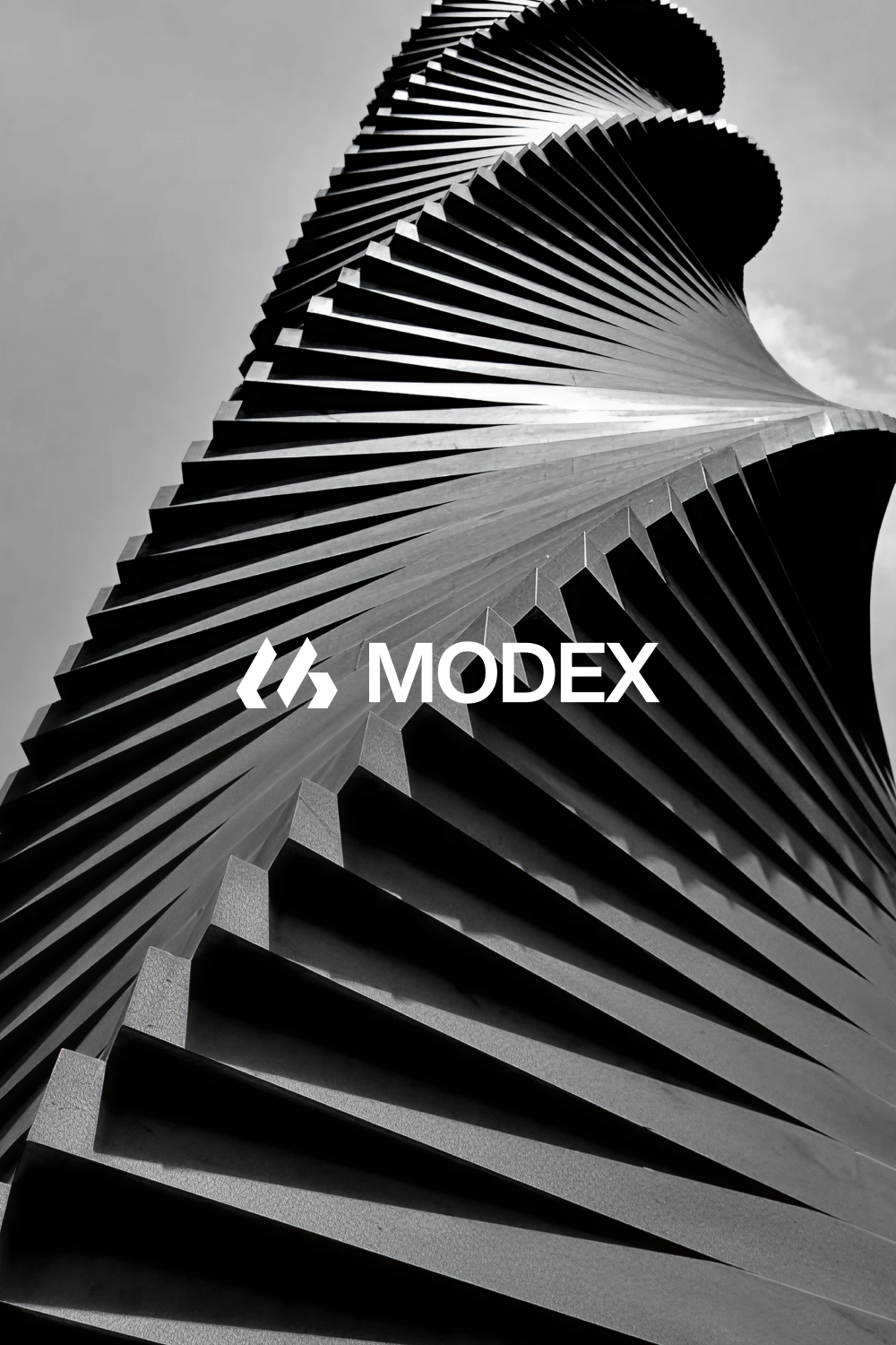 This is a striking architectural photograph featuring a modern, undulating facade characterized by strong diagonal lines and repetitive geometric patterns. The visual language is clean, sharp, and dynamic, emphasizing texture and rhythm through the interplay of light and shadow.