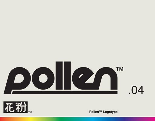 The design is minimalist and modern, utilizing a strong, bold sans-serif typeface for the word 'pollen' set against a neutral gray background. The composition is clean, focusing entirely on the brand name and a subtle numerical identifier.