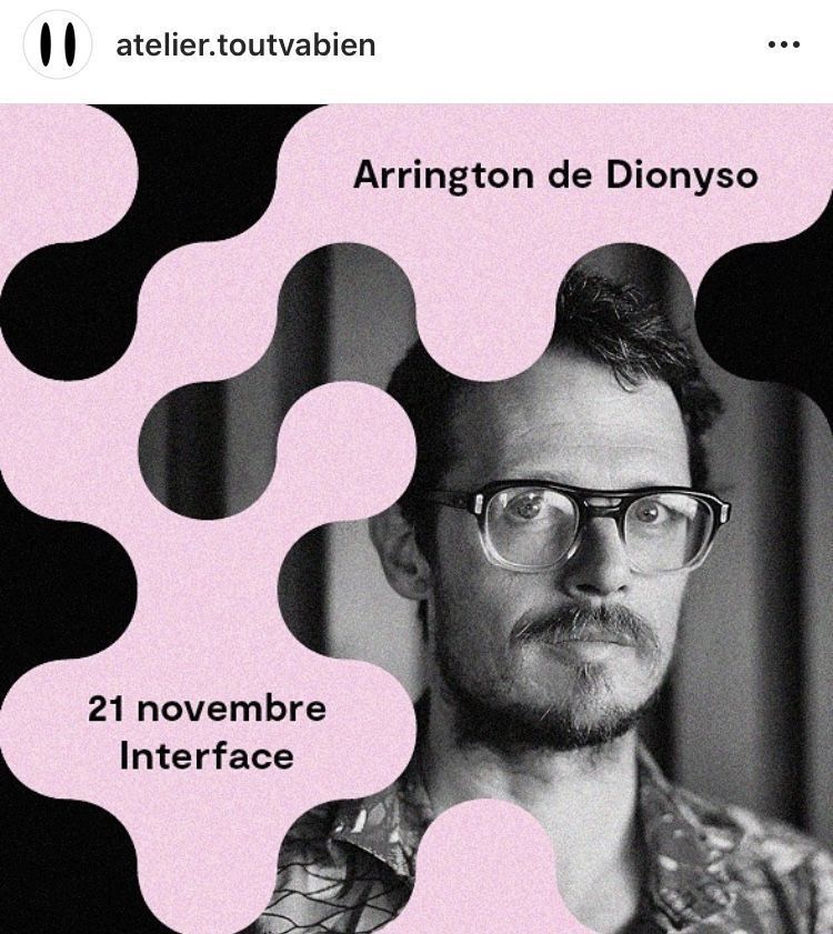 The image features a stark, high-contrast portrait overlaid with abstract, organic shapes in a soft pink hue. The design balances photographic realism with graphic abstraction to create an intriguing and modern aesthetic.