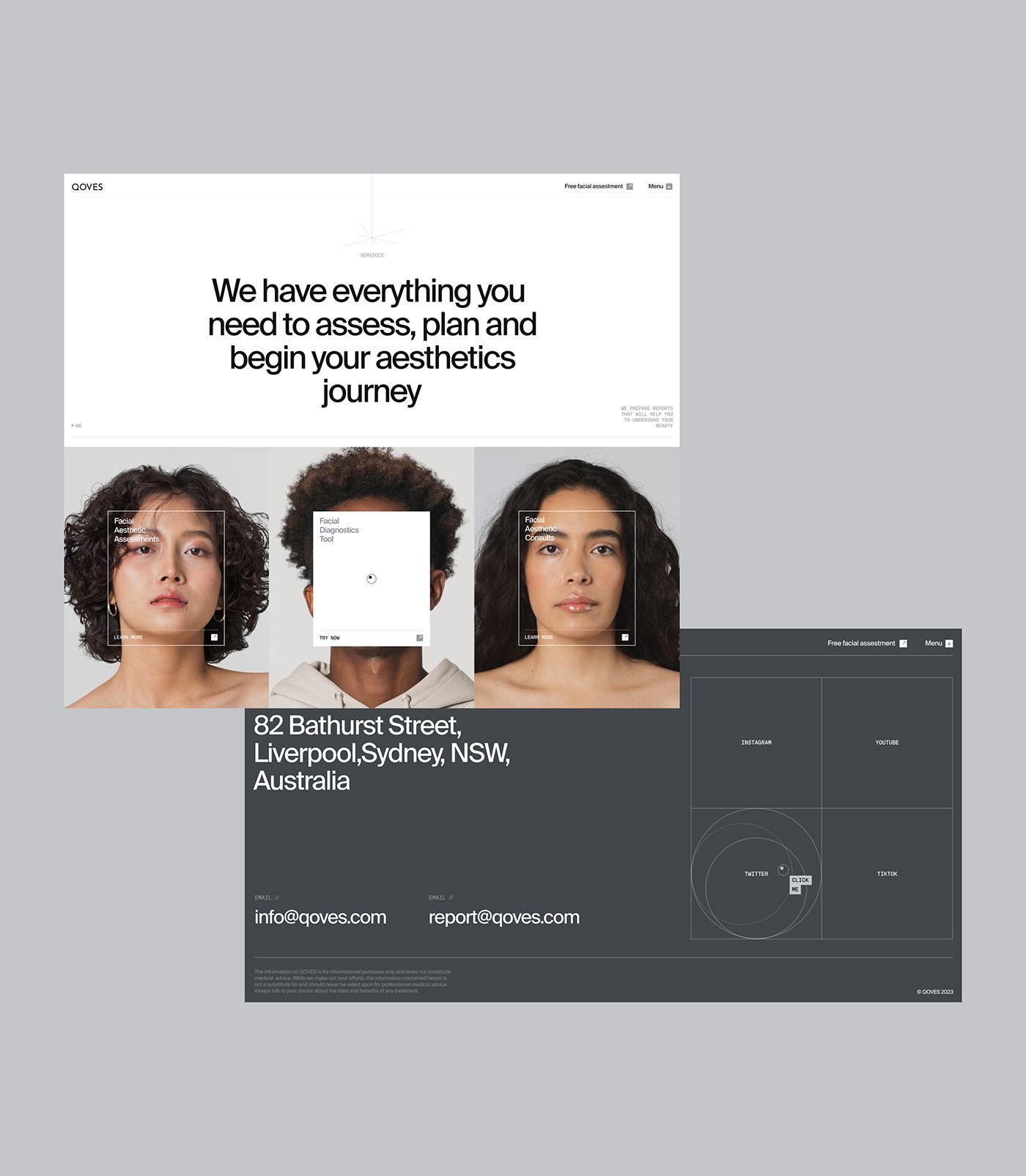 The design is clean, minimalist, and professional, utilizing a high-key monochrome palette to focus attention on the subject's faces. The layout is structured, employing negative space effectively to create a sense of calm and sophisticated inquiry.