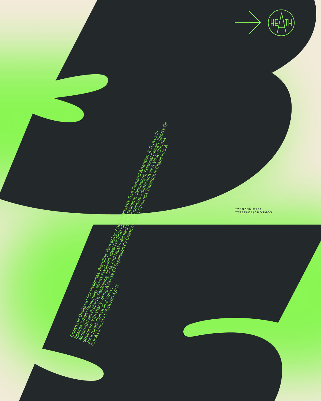 This design features a stark, modern aesthetic using high contrast between black and a pale lime green background. The composition is dominated by large, abstract, organic shapes that suggest movement or growth, creating a clean yet dynamic visual experience.