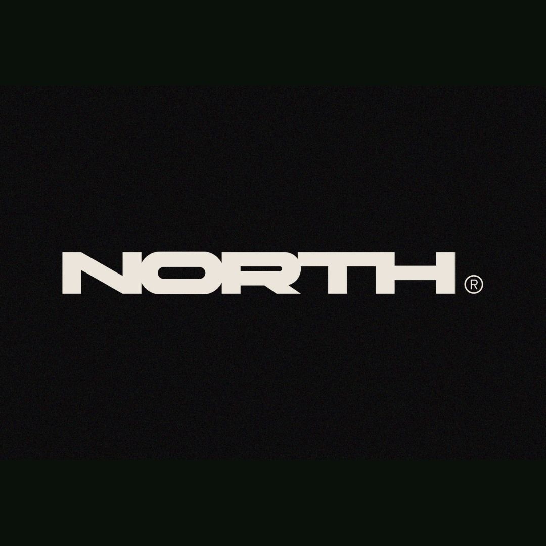 This is a minimalist and strong logotype featuring the word 'NORTH' in a clean, sans-serif typeface. The design relies heavily on negative space and stark contrast to convey a sense of modern, established quality.