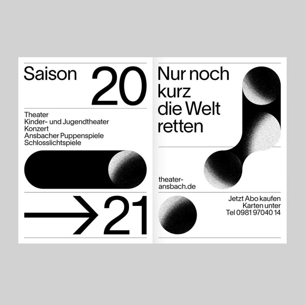 The design is stark, minimalist, and highly graphic, utilizing strong negative space and bold, solid shapes to convey a sense of modern, perhaps slightly severe, information delivery. The visual language relies heavily on high contrast between black and white to create a clean, impactful aesthetic.