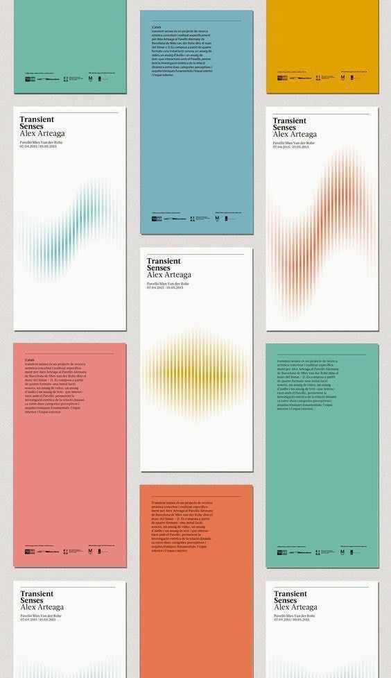 The image displays a series of minimalist, clean design layouts characterized by ample white space and subtle gradients or linear patterns. The overall visual language is sophisticated, modern, and restrained, relying heavily on typography and color blocking to convey information.