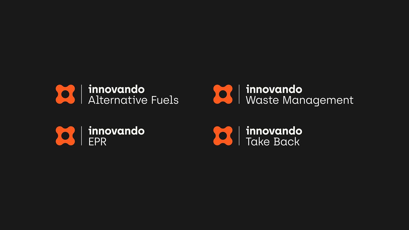 This display features a clean, minimalist presentation using high contrast and ample negative space to communicate corporate or industrial concepts. The design uses strong typography and a limited color palette to convey professionalism and focus on specific solutions.