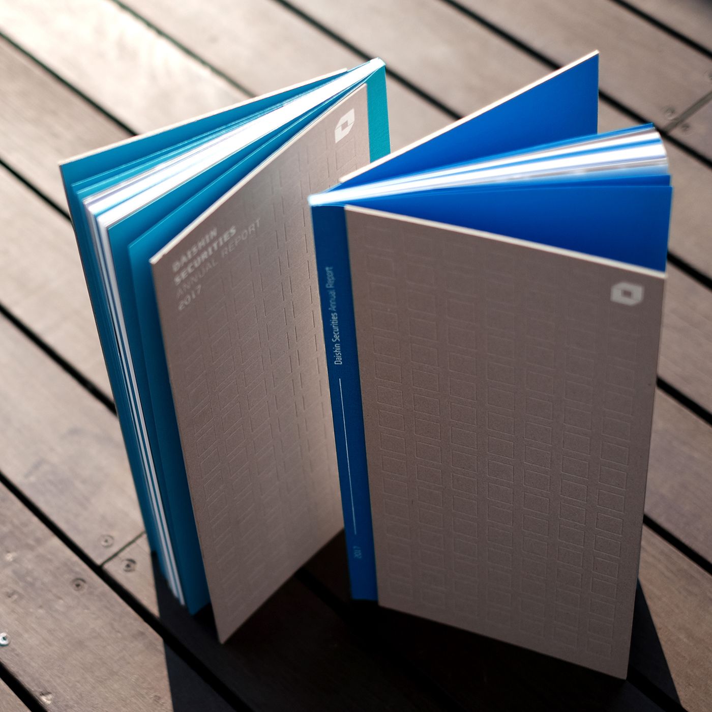 This image captures a study in corporate minimalism, showcasing neatly bound annual reports with clean lines and precise alignment. The visual language relies on subtle color transitions and a muted palette to convey trust, professionalism, and structured information.