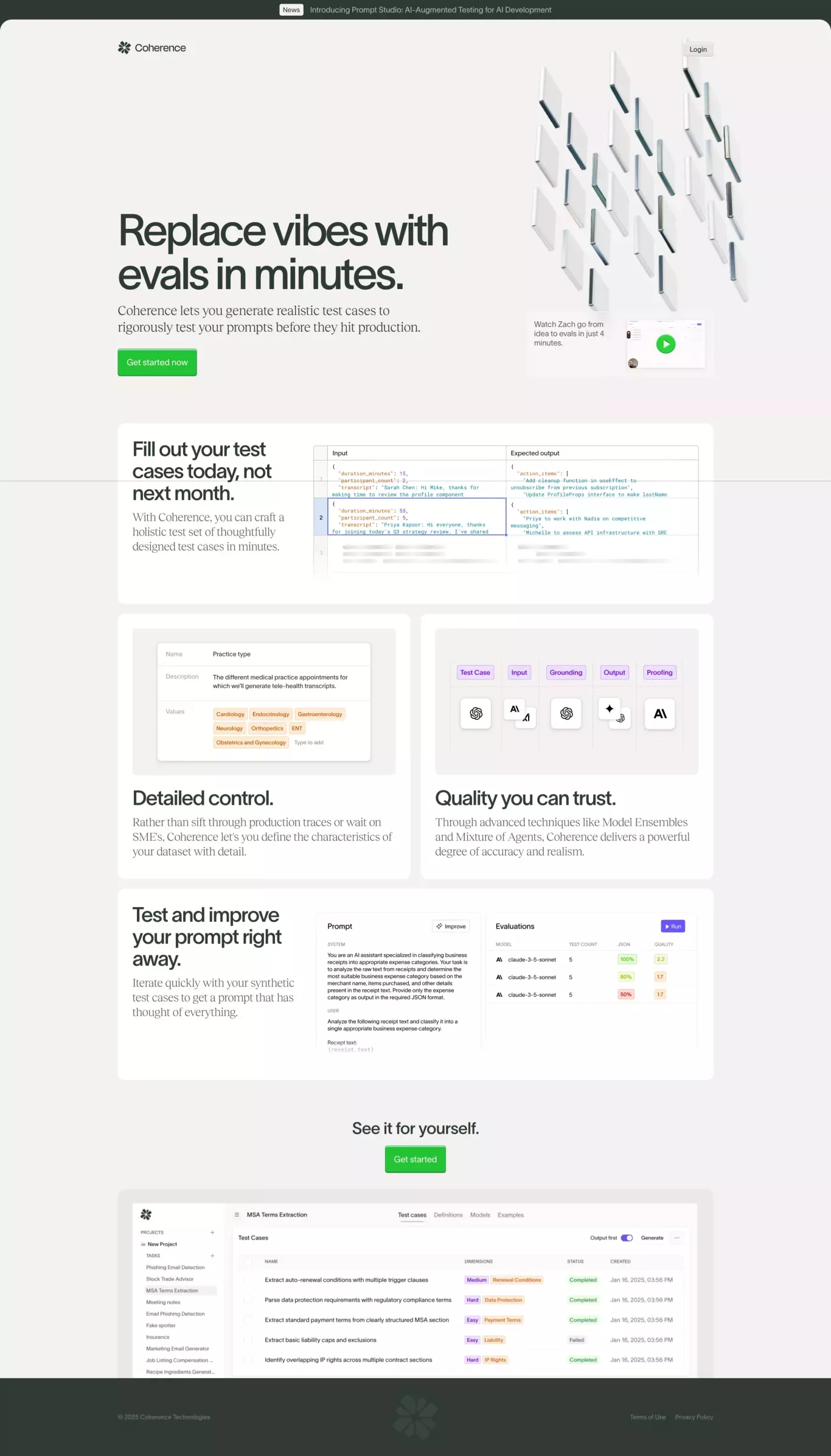 This design utilizes a highly minimalist and declarative approach, focusing on clear textual communication against a stark white background. The visual language is clean and professional, relying heavily on typography to convey authority and precision regarding the product's purpose.