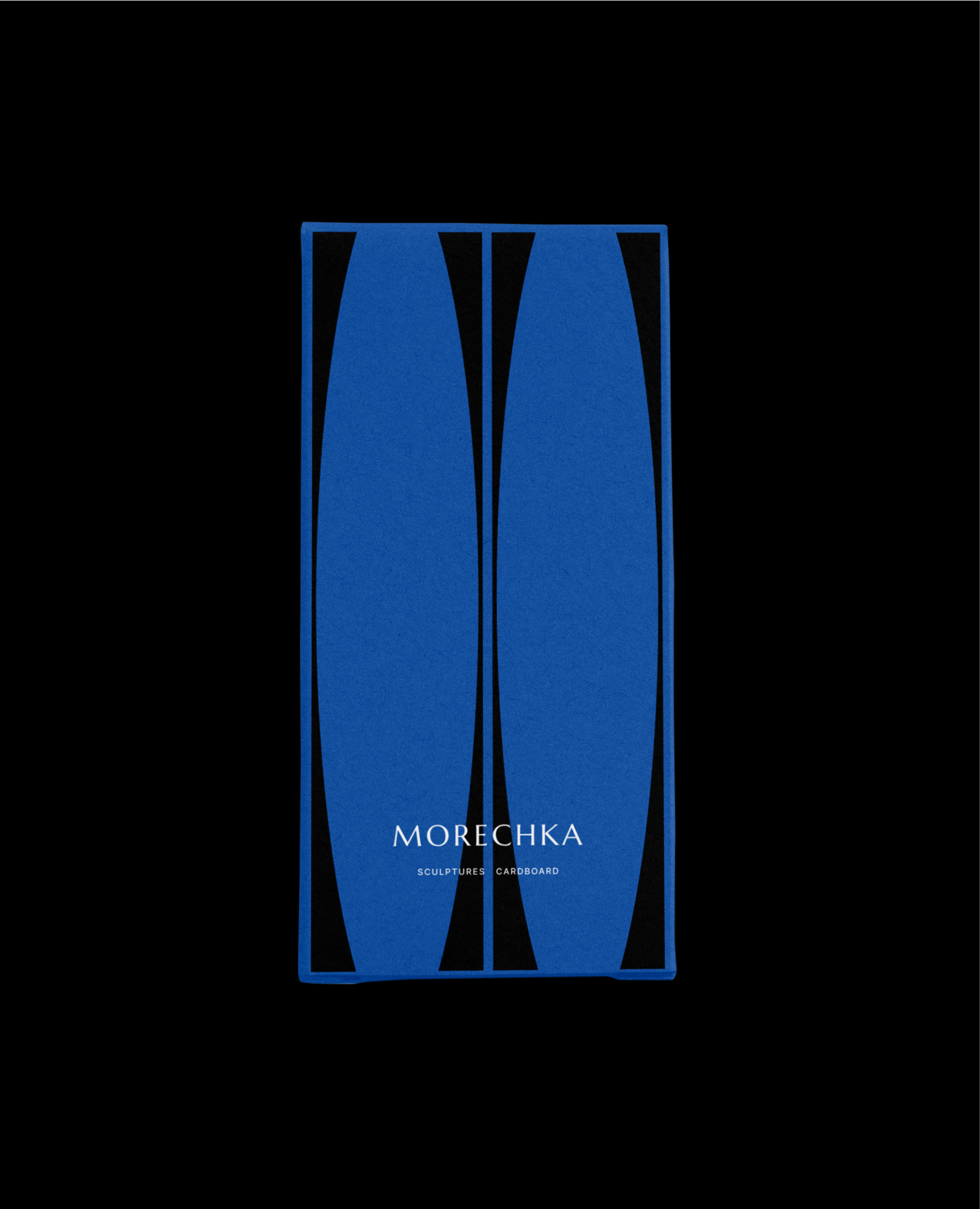This design employs a stark, high-contrast aesthetic using deep blue against pure black to create a sophisticated and modern visual. The composition is highly minimalist, relying on clean vertical lines and symmetrical curved shapes to draw the viewer's eye.