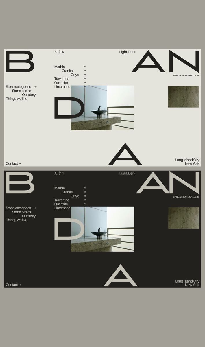 This design exemplifies extreme minimalism through clean geometric forms and restrained use of color. The visual language relies on precise lines, negative space, and a muted palette to convey sophistication and quiet luxury. The overall feel is highly structured, calm, and contemporary.