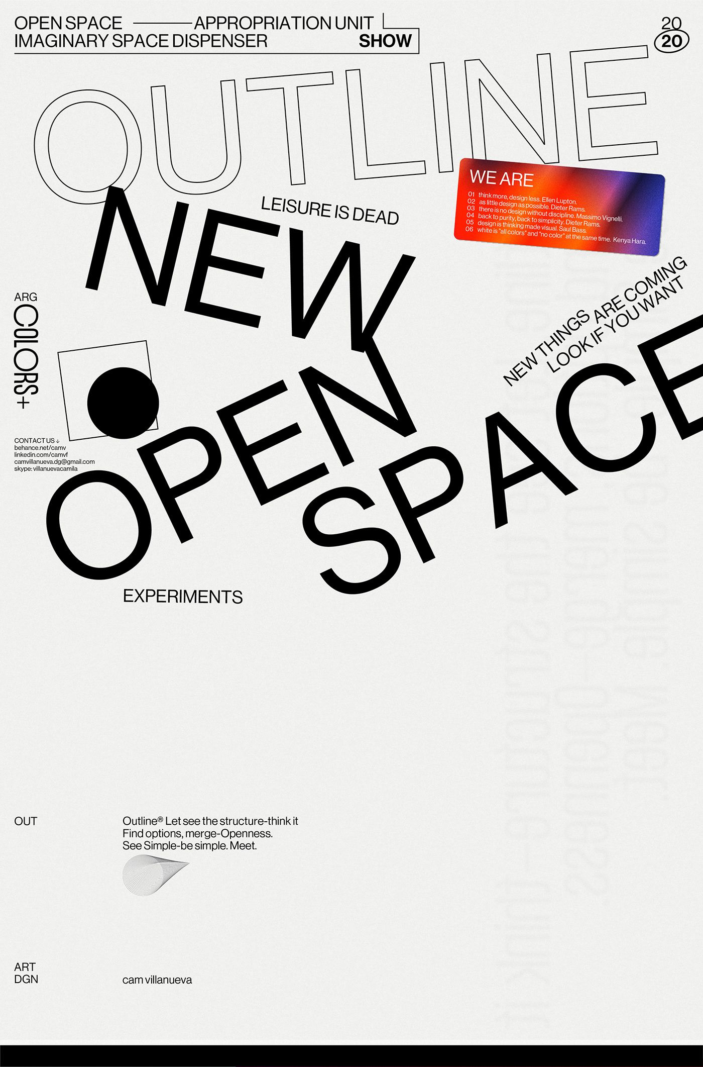 The design is stark, minimalist, and conceptual, utilizing negative space heavily to create a dynamic yet restrained visual hierarchy. It employs bold, sans-serif typography and geometric shapes to convey an intellectual or avant-garde tone.