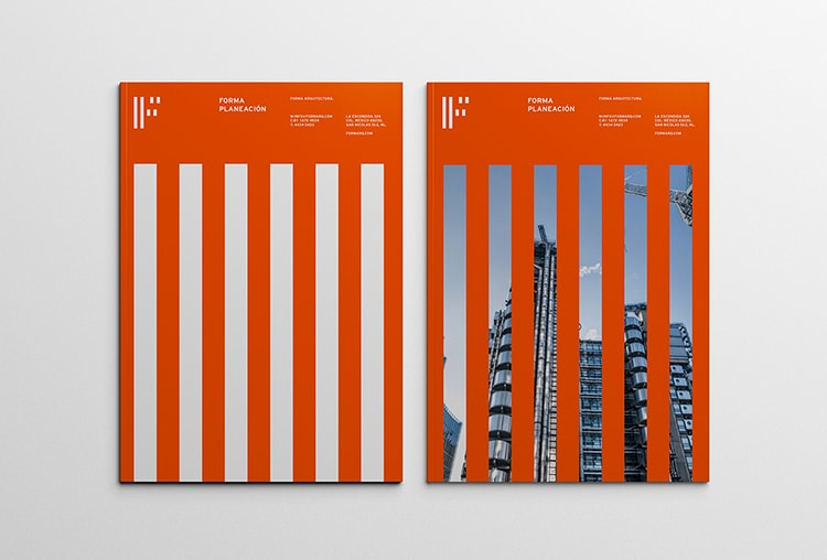 This design utilizes a high-contrast, minimalist aesthetic built around strong vertical rhythm and bold color blocking. It effectively juxtaposes abstract geometric patterns with photographic imagery to create an energetic and structured visual experience.