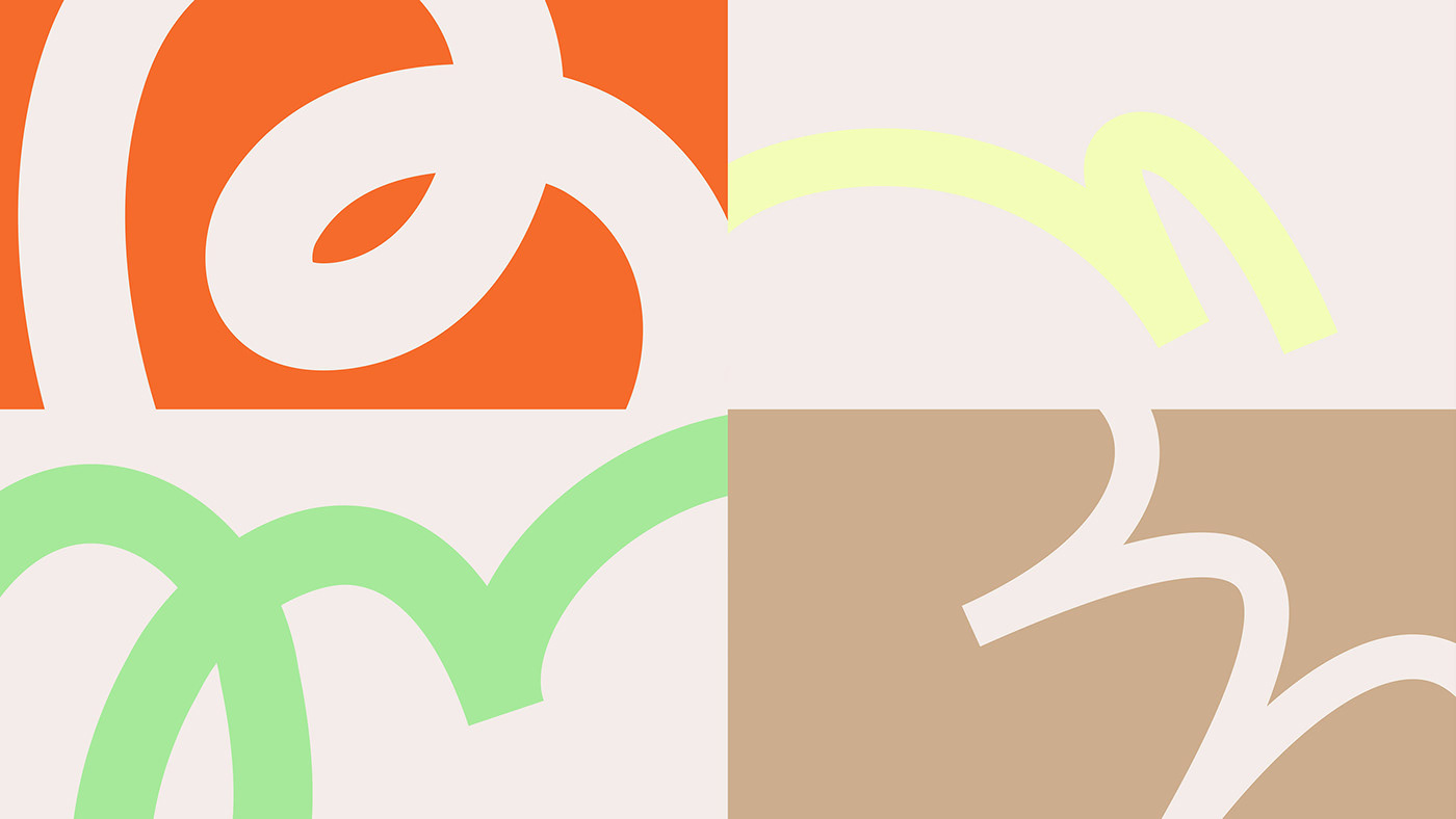 This design utilizes a minimalist approach, combining soft, organic line art within a structured grid. The visual language is fluid and hand-drawn, employing muted earth tones contrasted with pale pastel accents to create a gentle and modern aesthetic.