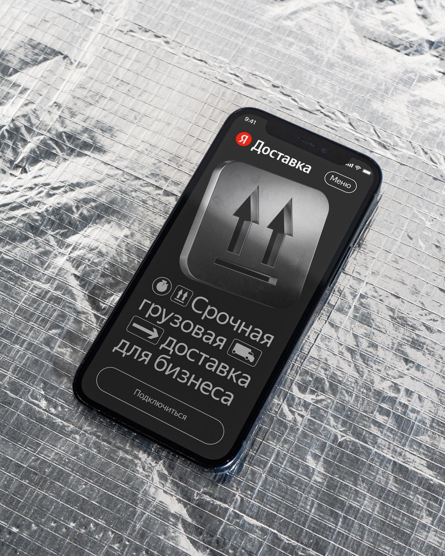 This interface utilizes a clean, high-contrast dark mode design to present a professional service offering. The visual language is direct and functional, prioritizing key actions like urgent cargo delivery through clear iconography and concise text. The overall feel is modern, serious, and focused on immediate business utility.