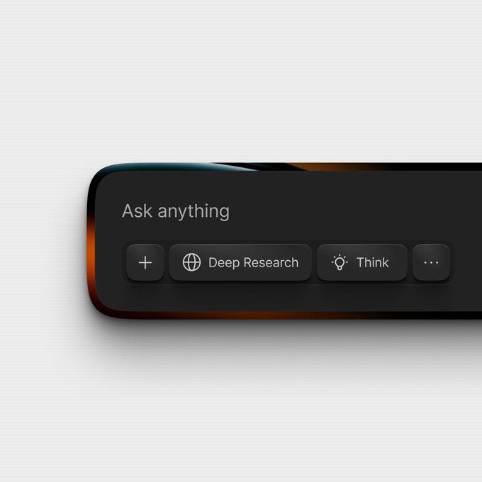This interface design utilizes a dark, glossy aesthetic to convey sophistication and focus. The visual language is clean and modern, emphasizing functionality through clear icons and minimal text. It successfully creates a premium feel suitable for advanced search or AI applications.