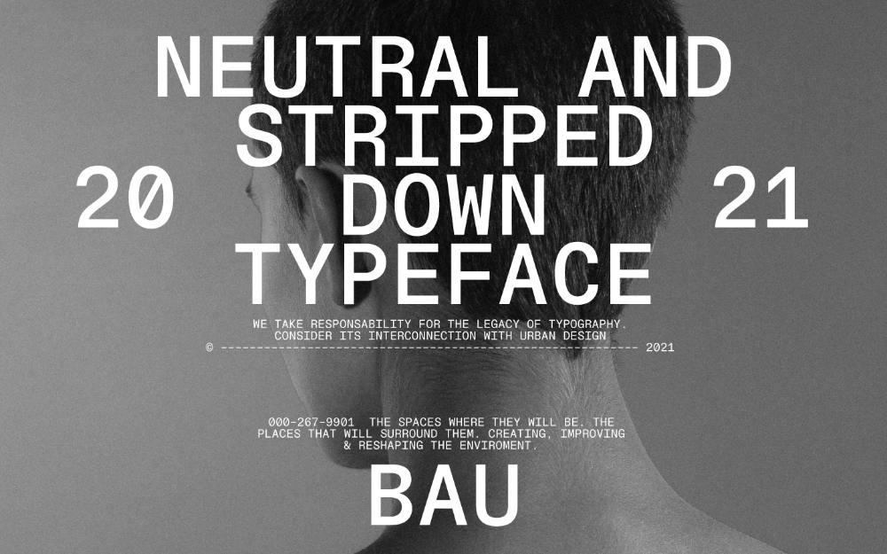 This design utilizes a stark, minimalist approach, relying heavily on large, clean typography and subtle grayscale tonality to convey a sense of precision and modern design. The composition balances geometric numerical elements with organic, implied forms to create a conceptual and highly refined visual statement.