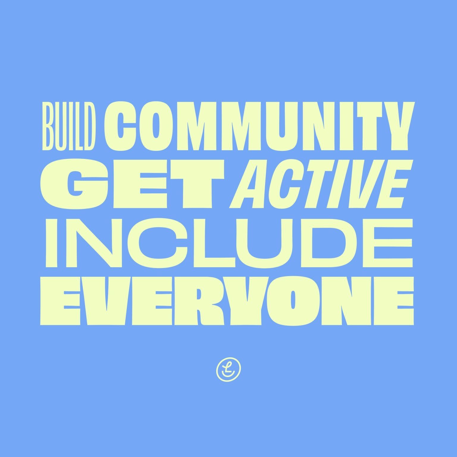 This is a bold, text-based graphic design featuring stacked, capitalized words in a clean, sans-serif typeface against a solid, light blue background. The design uses high contrast and simple typography to convey a strong, inclusive message.