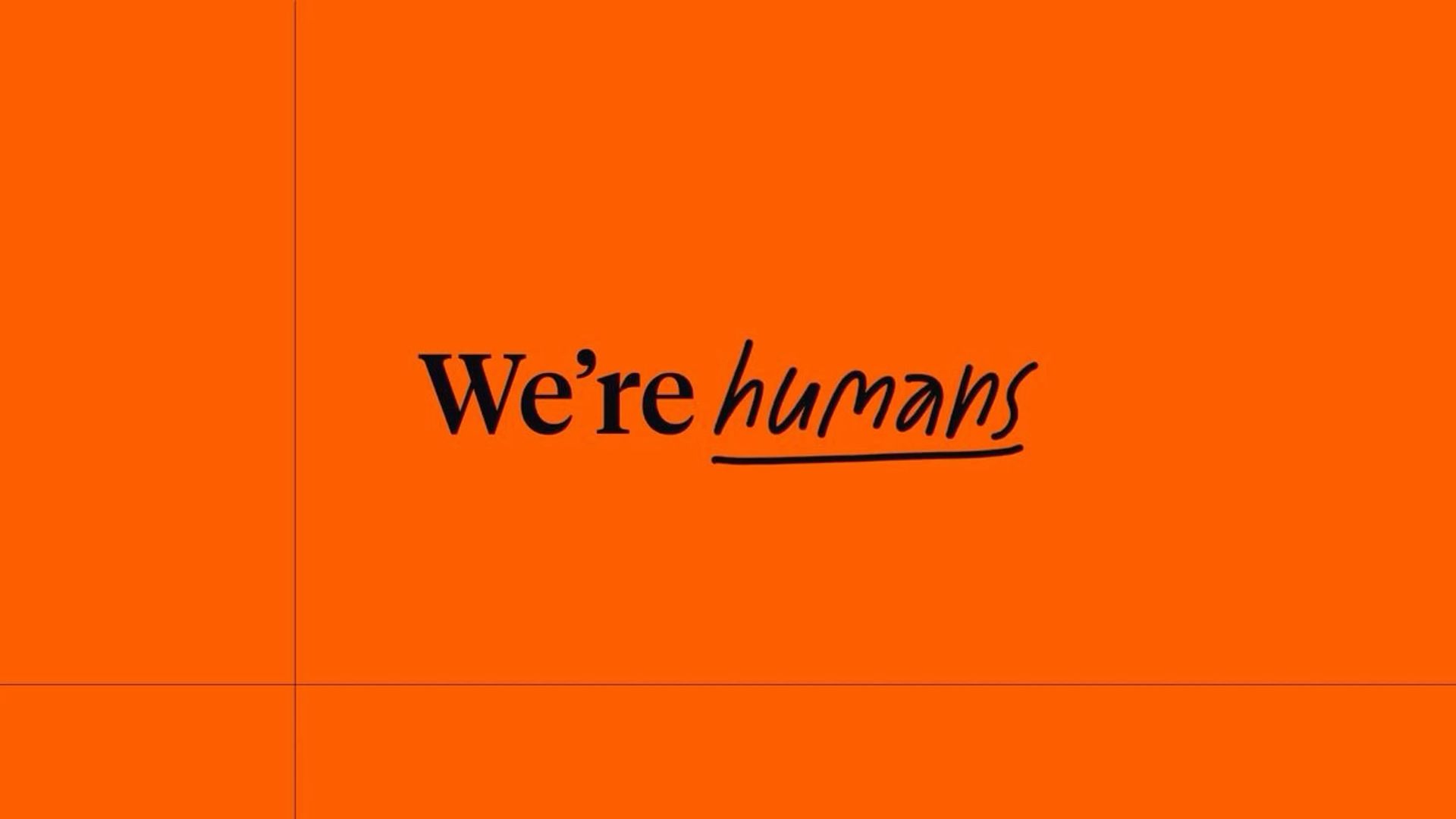 The design is minimalist and bold, utilizing a high-contrast, warm orange background with simple black typography. The layout is clean and centered, focusing all attention on the short, declarative statement.