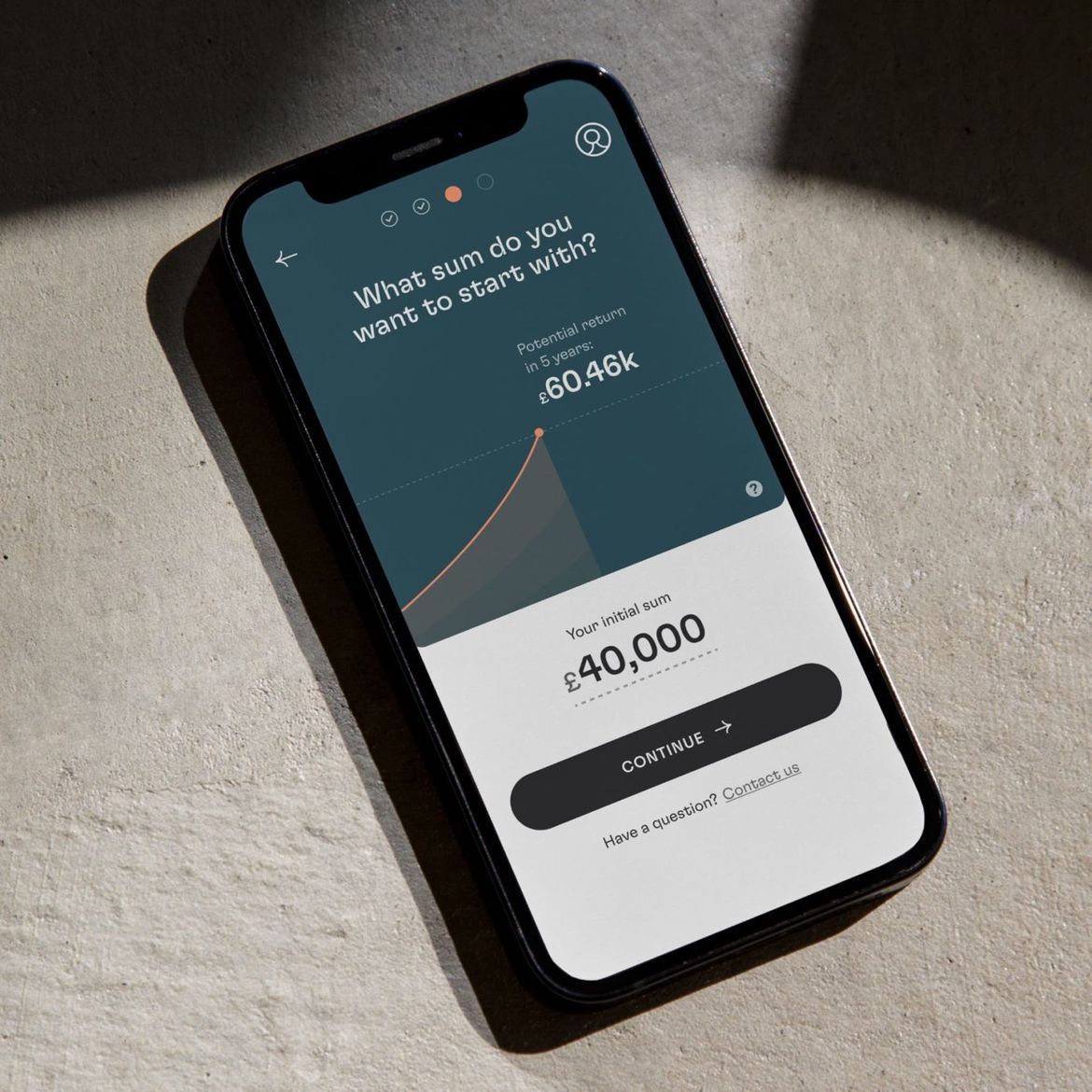 This is a clean, modern mobile application screen featuring a financial projection interface. The design utilizes a dark teal/green gradient for emphasis against a light background, conveying professionalism and trust.