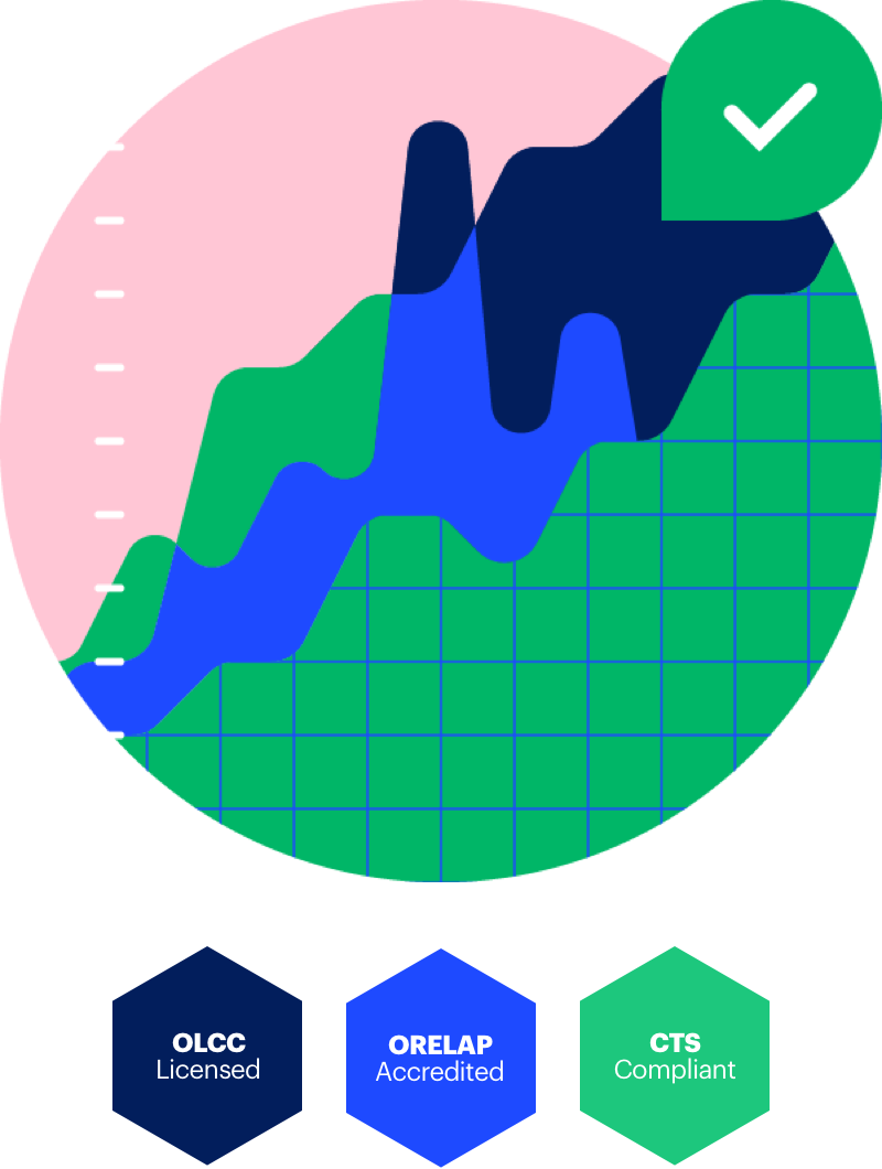 The image presents a data visualization or performance graph using vibrant, layered colors against a dark background. It employs a clean, modern aesthetic typical of technical or analytical dashboards, emphasizing data trends and compliance indicators.
