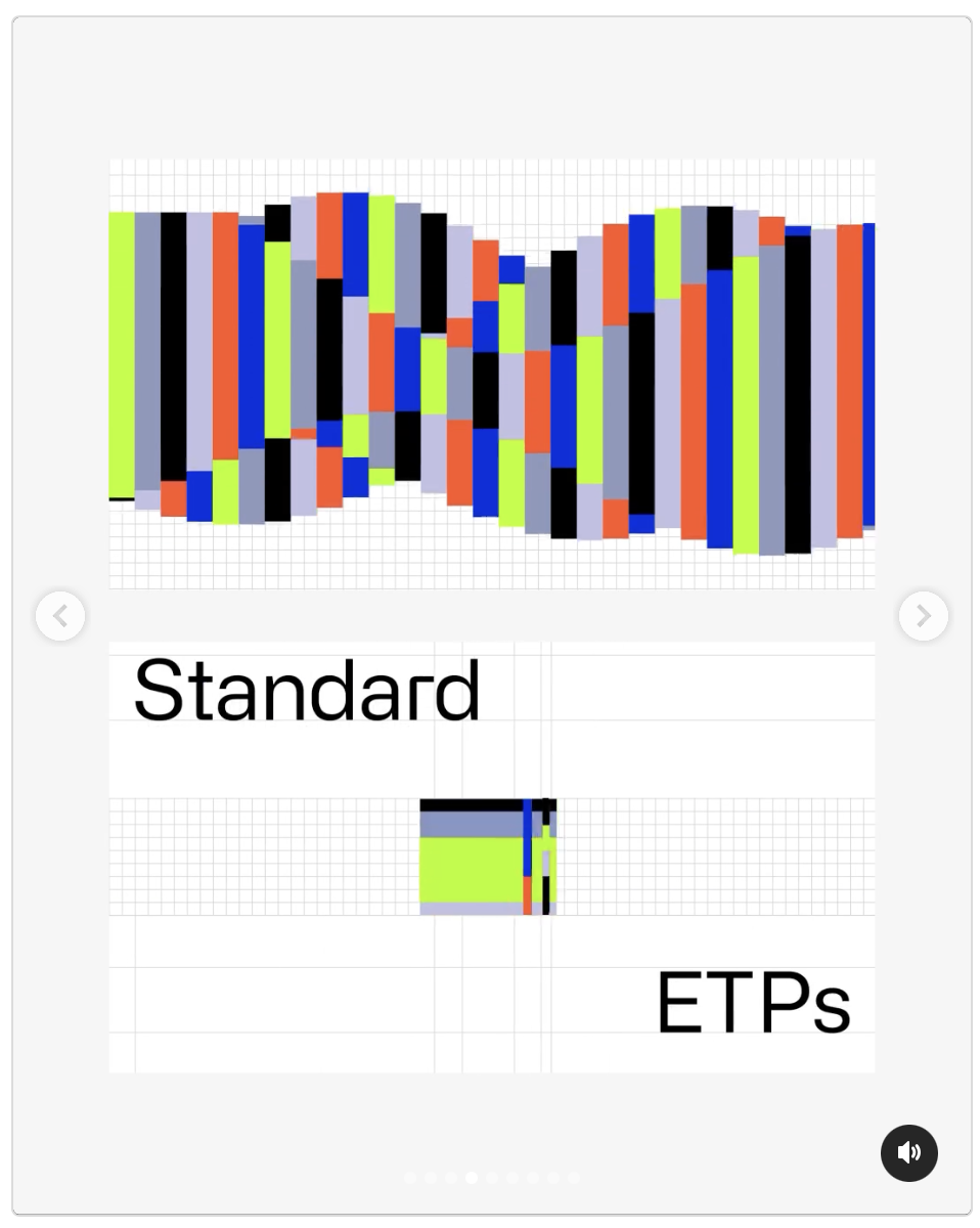 This image presents a clean, technical data visualization comparing two sets of metrics, 'Standard' and 'ETPs,' using a grid-based bar chart format. The design emphasizes clarity and quantitative comparison through distinct color coding and structured layout.
