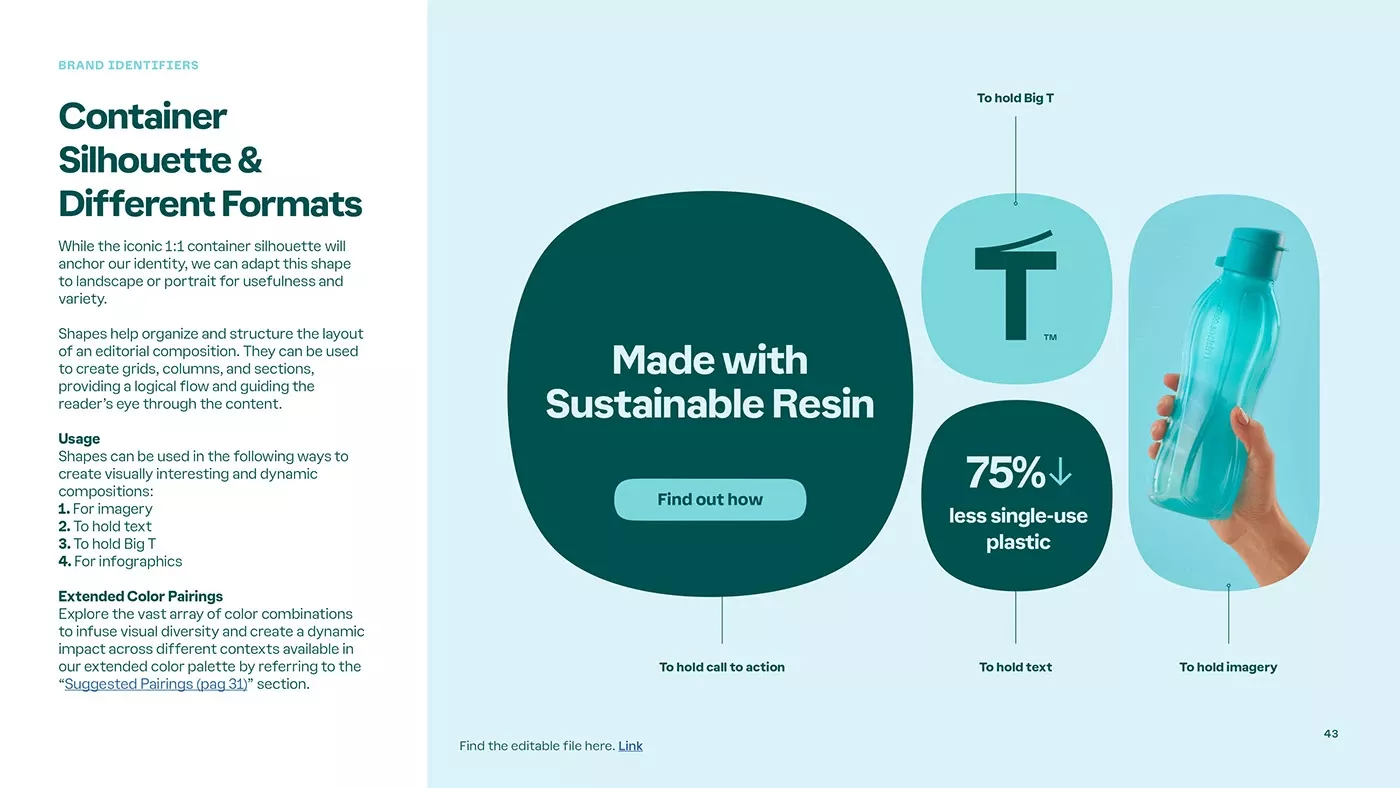 This page features a clean, organized grid layout used to present detailed brand identifiers and usage guidelines. The visual language is minimalist and corporate, relying on clear typography and soft transitions between text explanations and illustrative icons to convey complex information effectively.