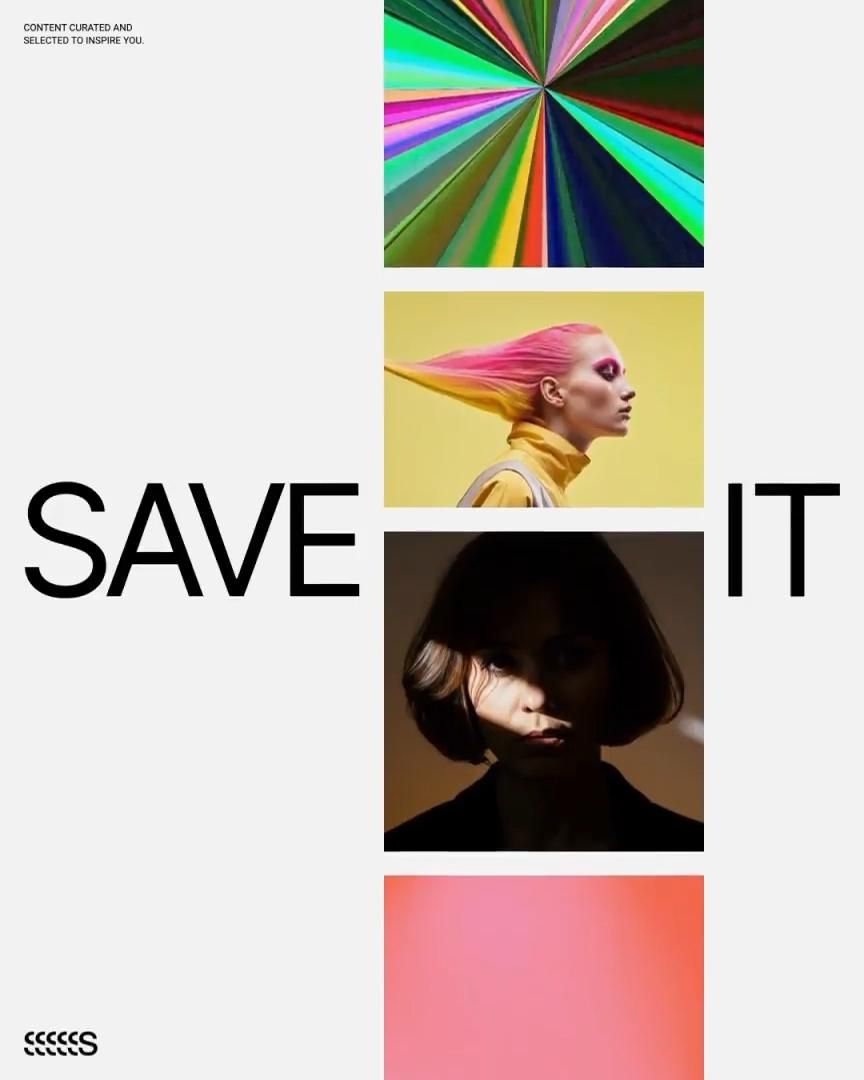 This composition blends stark minimalism with vibrant color fields and high-impact editorial photography to create a visually arresting and aspirational mood. The design effectively uses negative space and bold typography alongside abstract patterns to convey a sense of curated luxury.