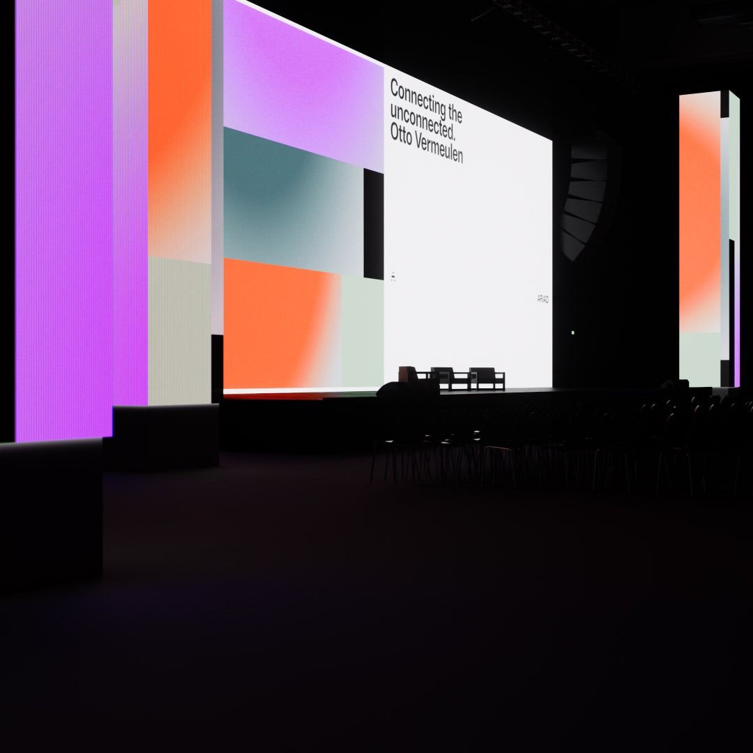 The image presents a modern, minimalist exhibition or presentation space characterized by large, vertical illuminated panels that feature abstract color gradients. The design emphasizes clean lines, subtle transitions between colors, and a sophisticated, gallery-like atmosphere.