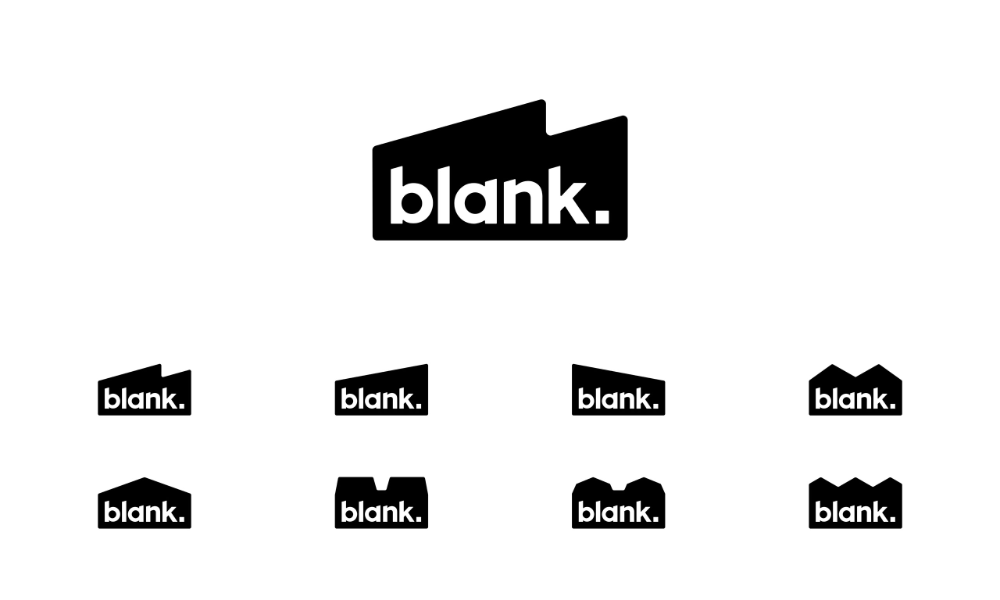 The image presents a minimalist and clean logotype design using a bold, sans-serif typeface. The visual language relies on negative space and simple geometric shapes to convey the concept of 'blankness' or emptiness. The overall feel is modern, corporate, and highly functional.
