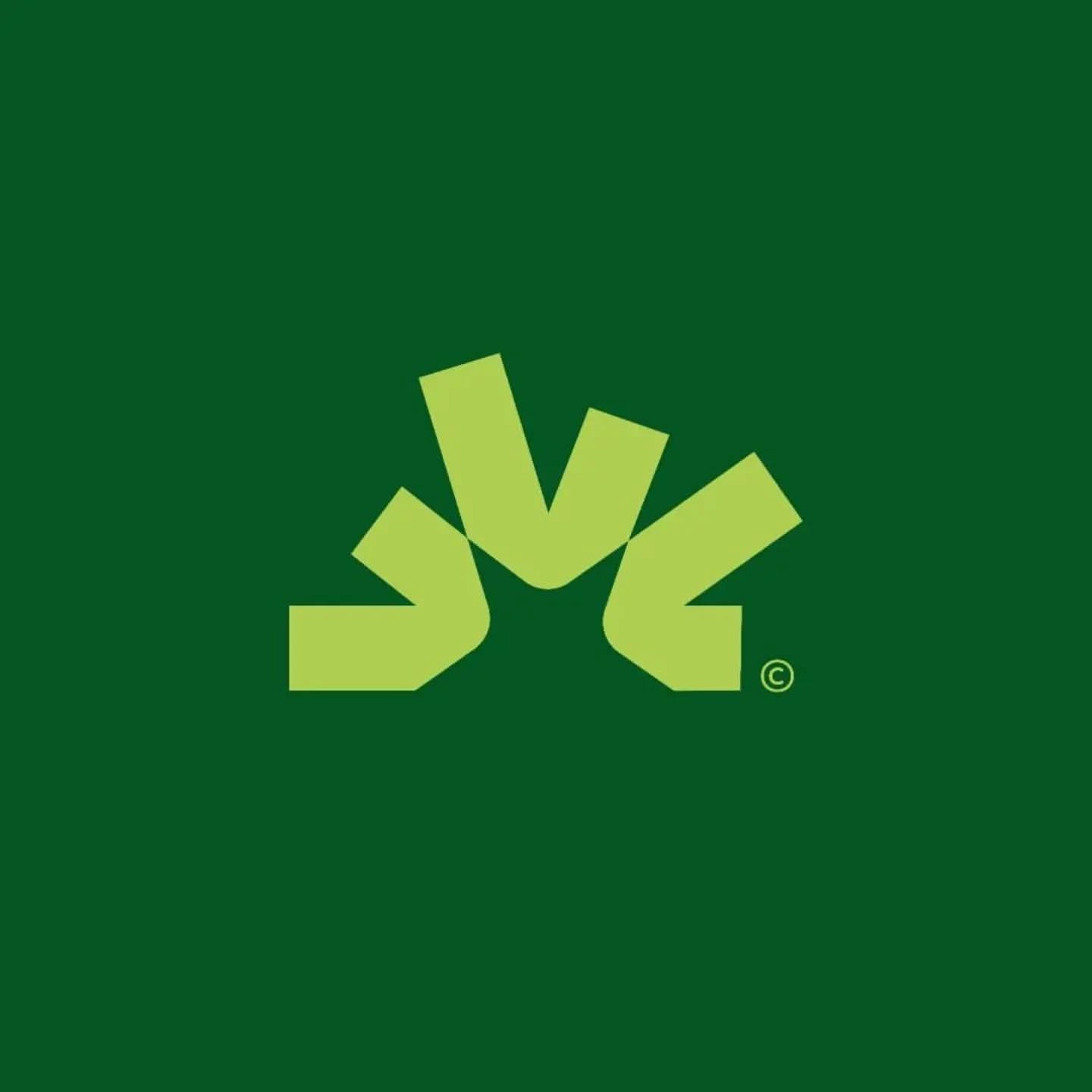 The image features a minimalist, abstract logo mark rendered in a light, muted green against a deep, solid emerald background. The design uses clean, geometric shapes to suggest movement or stylized letters, conveying a modern and sophisticated brand identity.