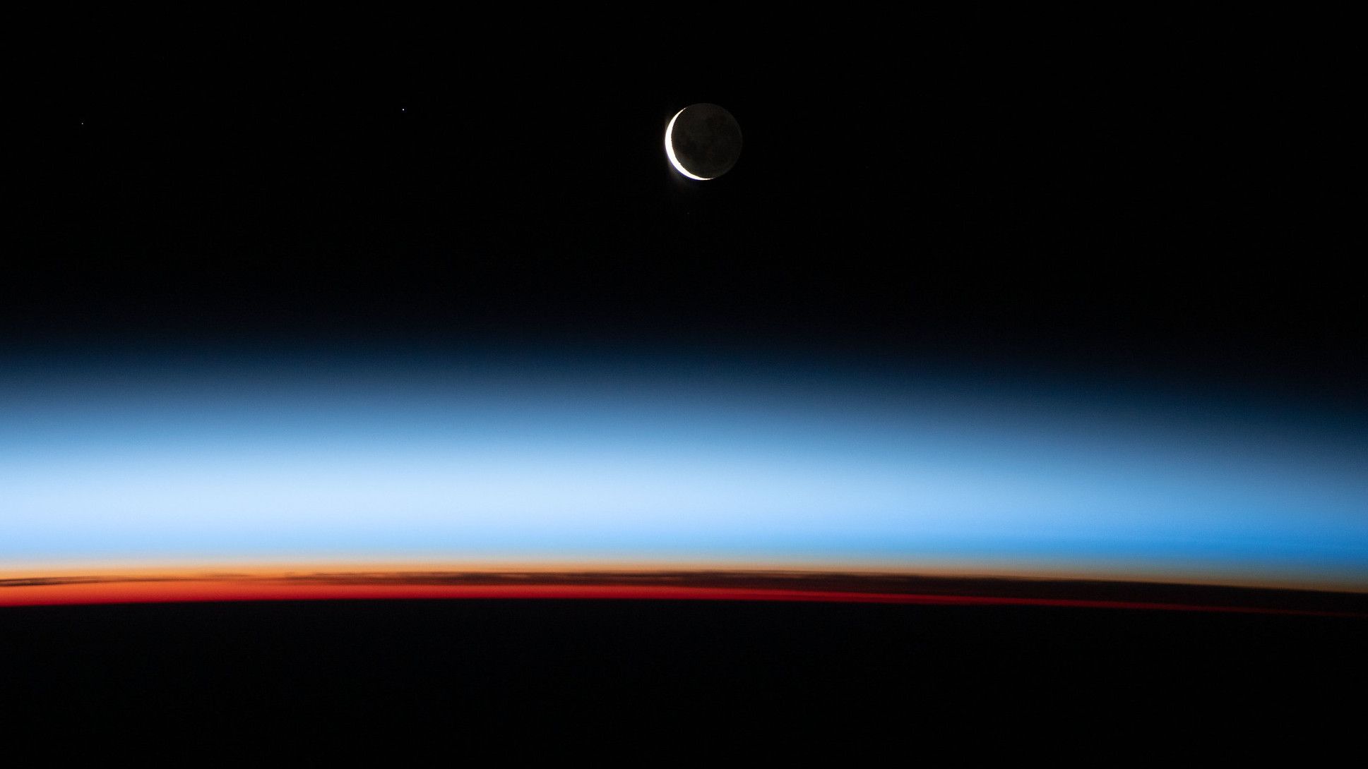 This image captures a breathtaking view of Earth from orbit, emphasizing the vastness of space and the delicate atmospheric layers. The visual language relies on deep gradients and high contrast between the dark void and the illuminated horizon.